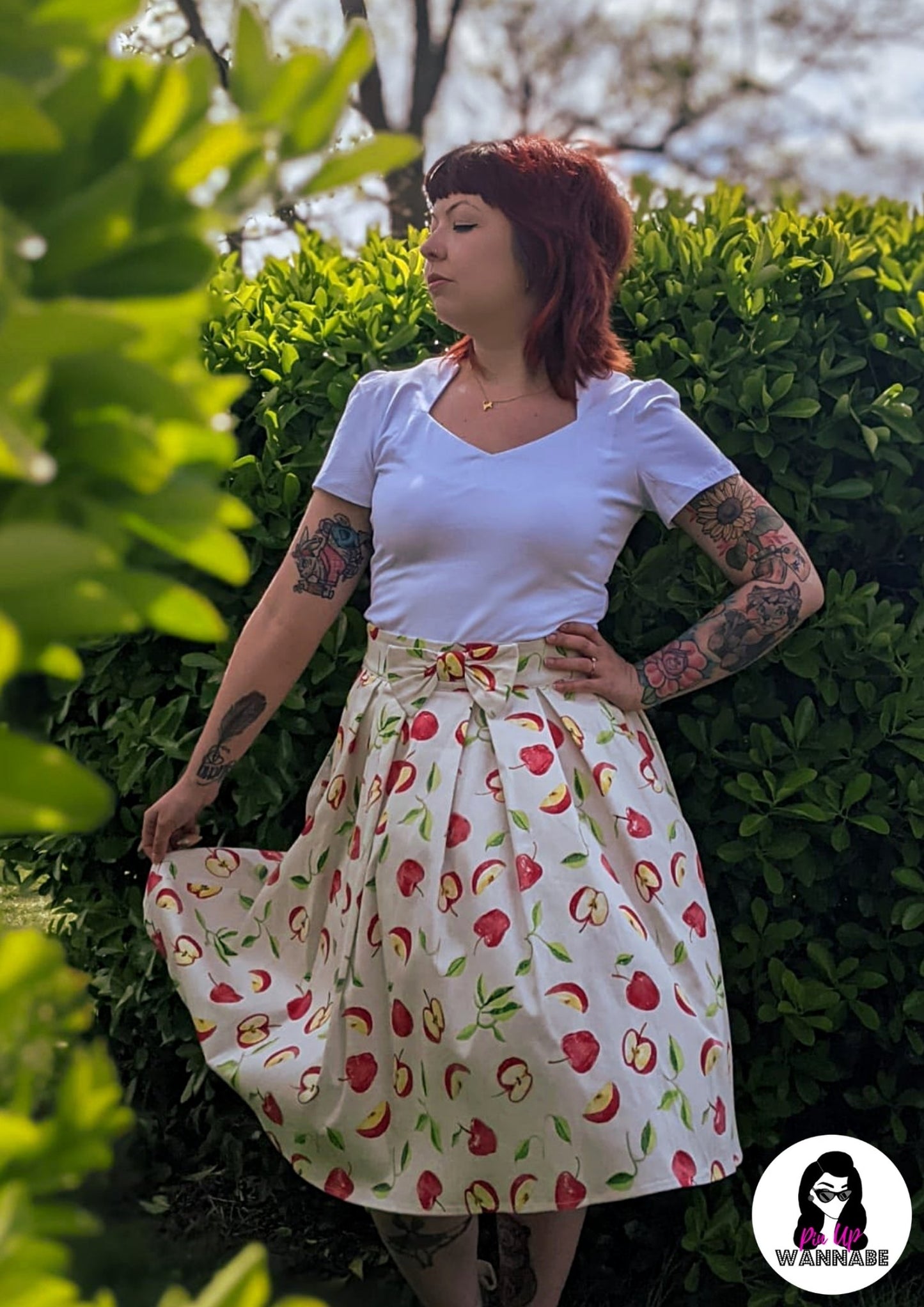 Twirl like a beautiful apple blossom in this 100% cotton, high waisted pleated skirt. Featuring a bow design at the front of the skirt, for that extra sweet touch.