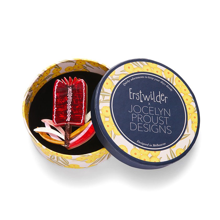Please be aware that resin is akin to ceramic and glass and therefore may be damaged if dropped or knocked. Due to the use of high quality silver-plating in our brooch clasps, tarnishing and oxidisation can occur, producing black and gold discolouration. As with all silver products, you can simply restore it using a silver cloth. Keep your Erstwilder companion neatly tucked away in this box when not being worn, avoid contact with perfumes, lotions, water and excessive sunlight and you’ll have a trusted friend for years to come.