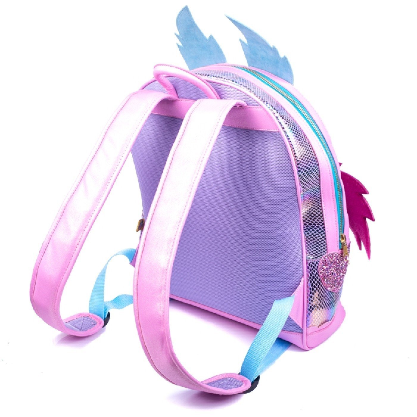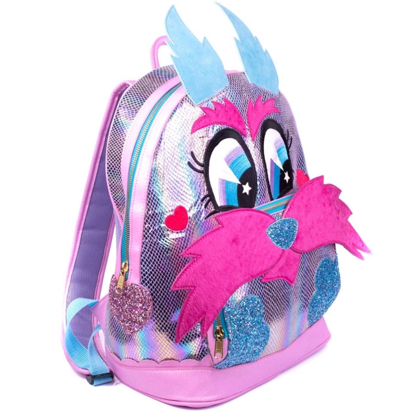 We're barking mad over this wooftastic backpack. A super adorable appliqué dog design emblazons a holographic rainbow upper and comes with a zipper close and zip-close front pocket.