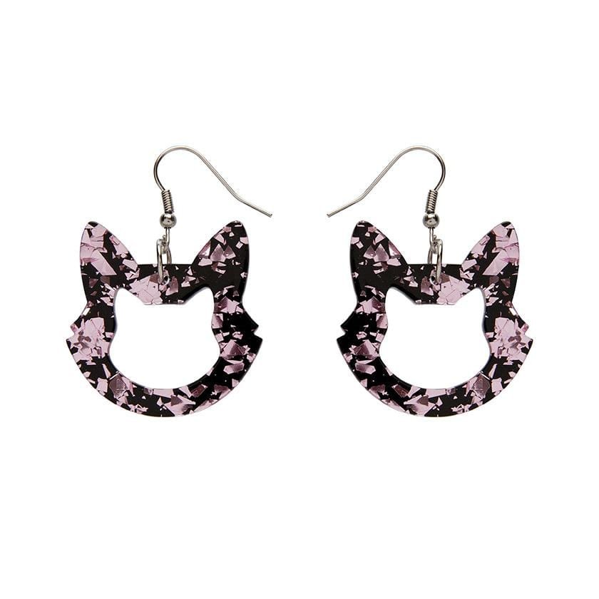 Cat Head Chunky Glitter Resin Drop Earrings - Pink