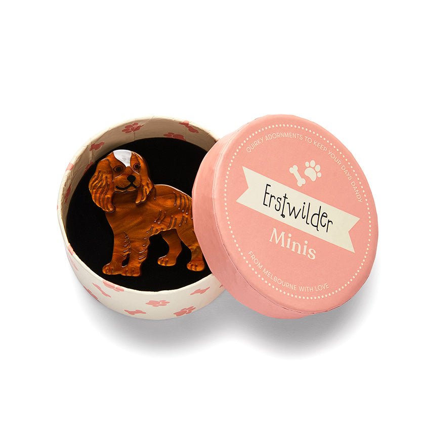 Please be aware that resin is akin to ceramic and glass and therefore may be damaged if dropped or knocked. Due to the use of high quality silver-plating in our brooch clasps, tarnishing and oxidisation can occur, producing black and gold discolouration. As with all silver products, you can simply restore it using a silver cloth. Keep your Erstwilder companion neatly tucked away in this box when not being worn, avoid contact with perfumes, lotions, water and excessive sunlight and you’ll have a trusted friend for years to come.
