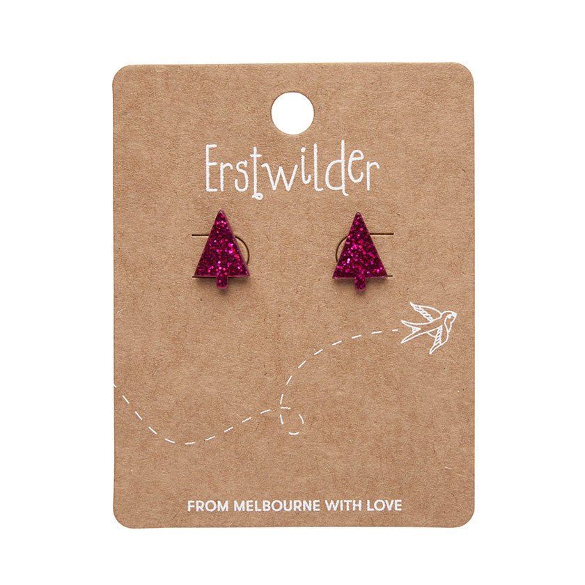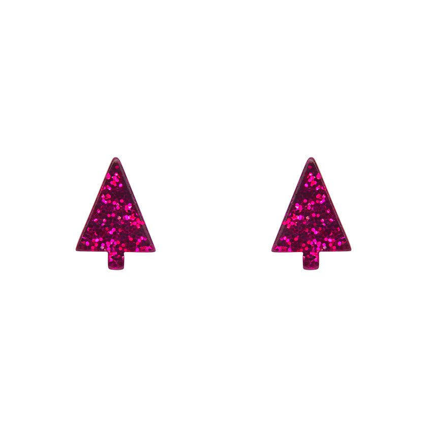Christmas Tree Fine Glitter Stud Earrings - Pink