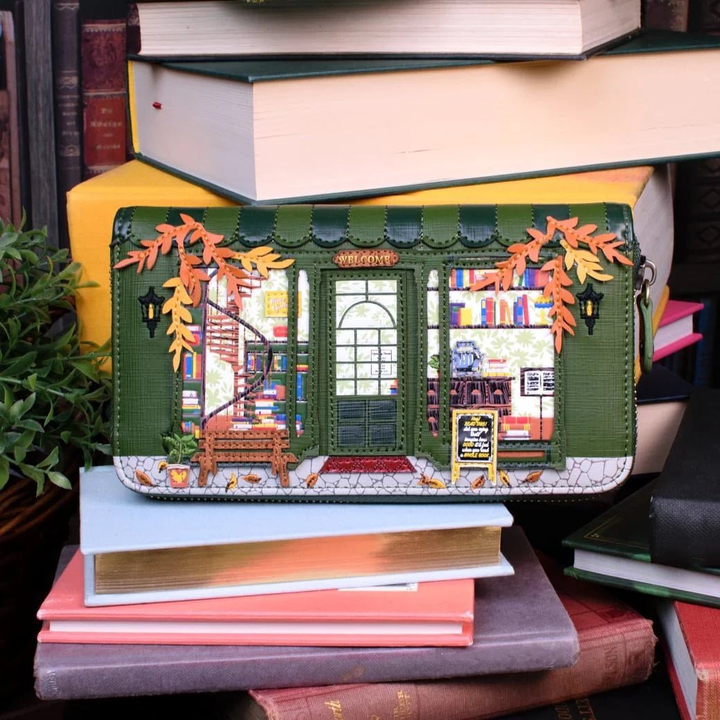 Would you like a matching wallet for your handbag? The Old Book Shop – Green Edition Large Ziparound Wallet looks heavenly with a book shop front artwork. It is secure thanks to the zip around closing, and you will be able to fit eight cards, cash and notes inside. You could even fit in a phone, depending on the size, of course. This vegan leather purse can be matched with the Old Book Shop Grace, Grab or Shopper bag, or with your purple or brown Old Book Shop bag. Either way, it'll look fabulous.