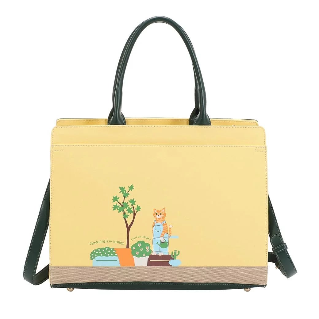 Look who’s back and is looking fabulous! The Vendula Garden Centre Tallulah Bag is impressively roomy and it can fit in all you need daily. It can be carried as a handbag or worn over the shoulder thanks to the detachable strap, and the base stud underneath will keep your bag stable and clean. It comes in yellow and green and boasts an artwork that will wow everyone around you.