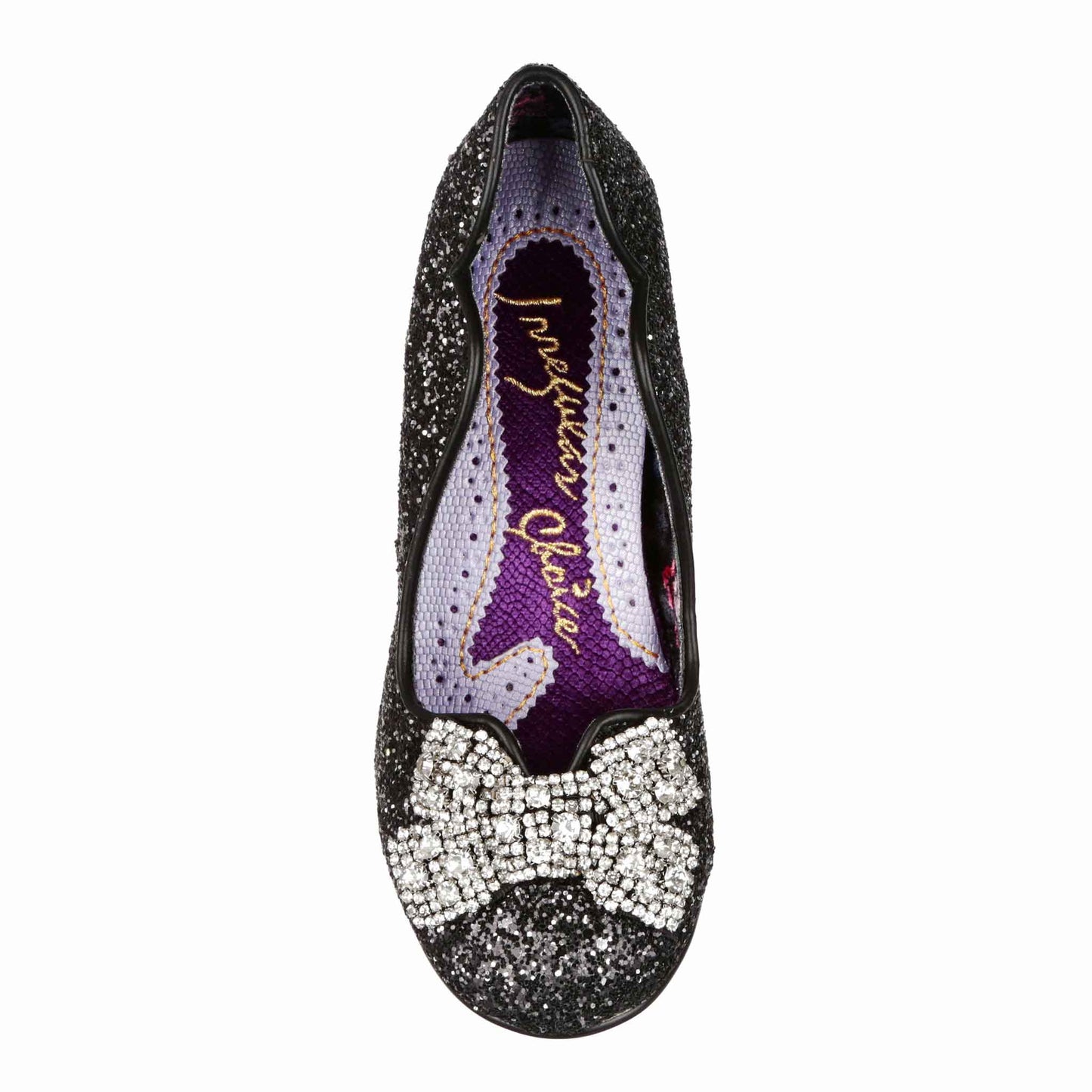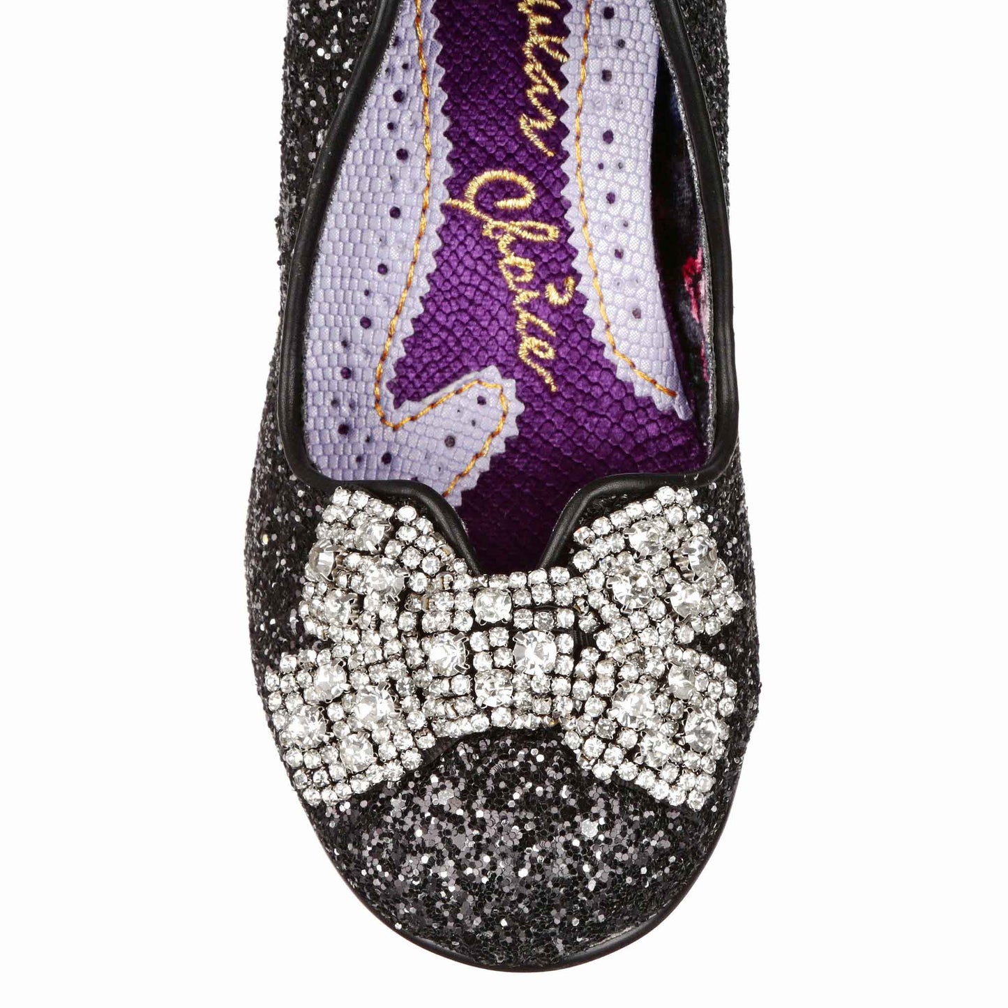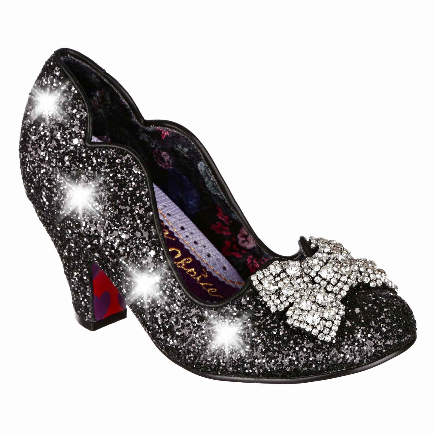 Deck The Halls with shoes so shiny, fa la la la la! You won't be able to get it out of your head when you slip on these glimmering black glitter mid heel shoes. The glitter encrusted shoe and heel are topped with a rhinestone covered bow, and if that wasn't sparkling enough, watch as the embedded LED lights twinkle as you walk!