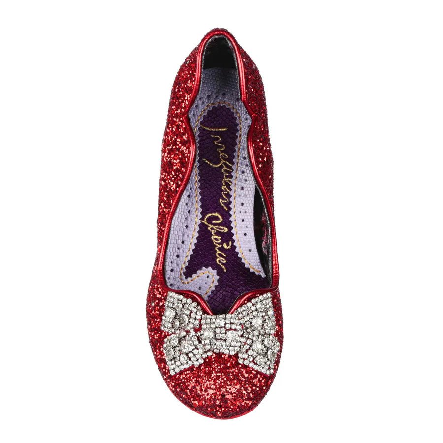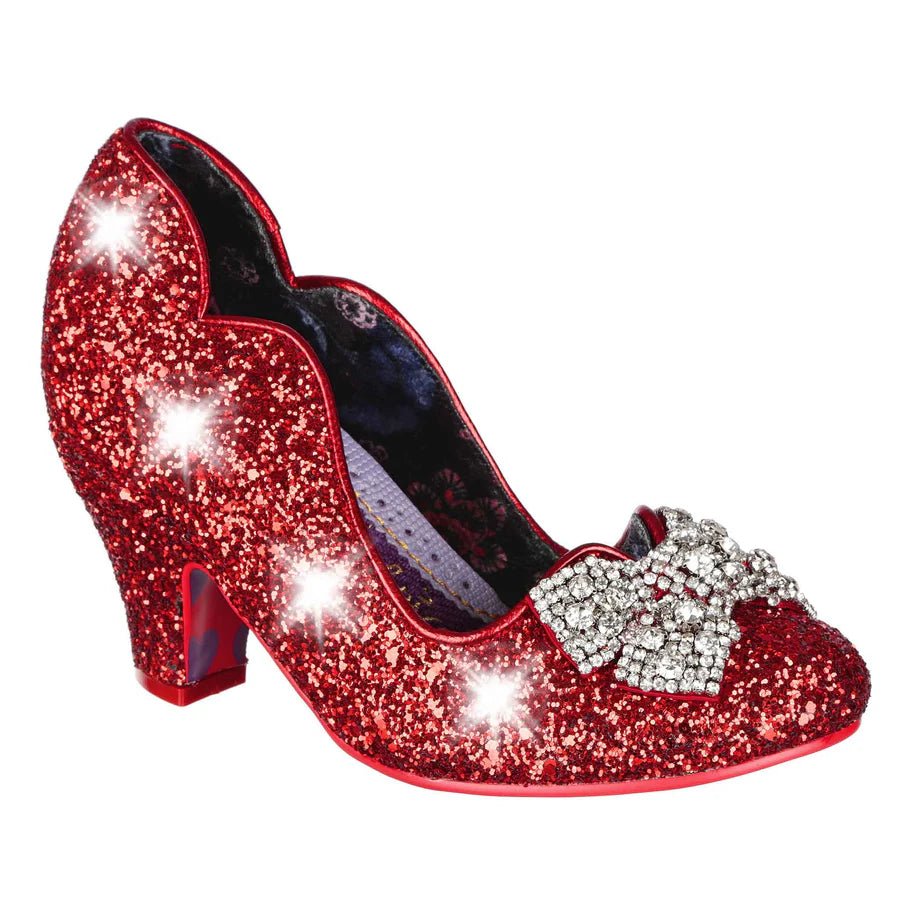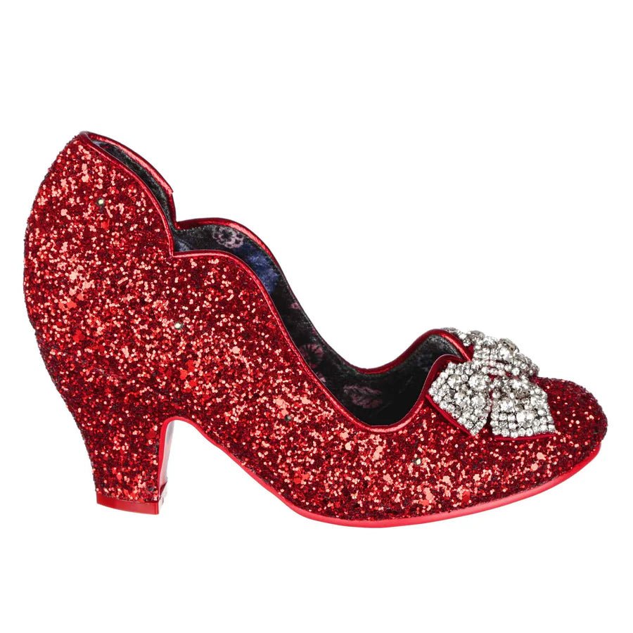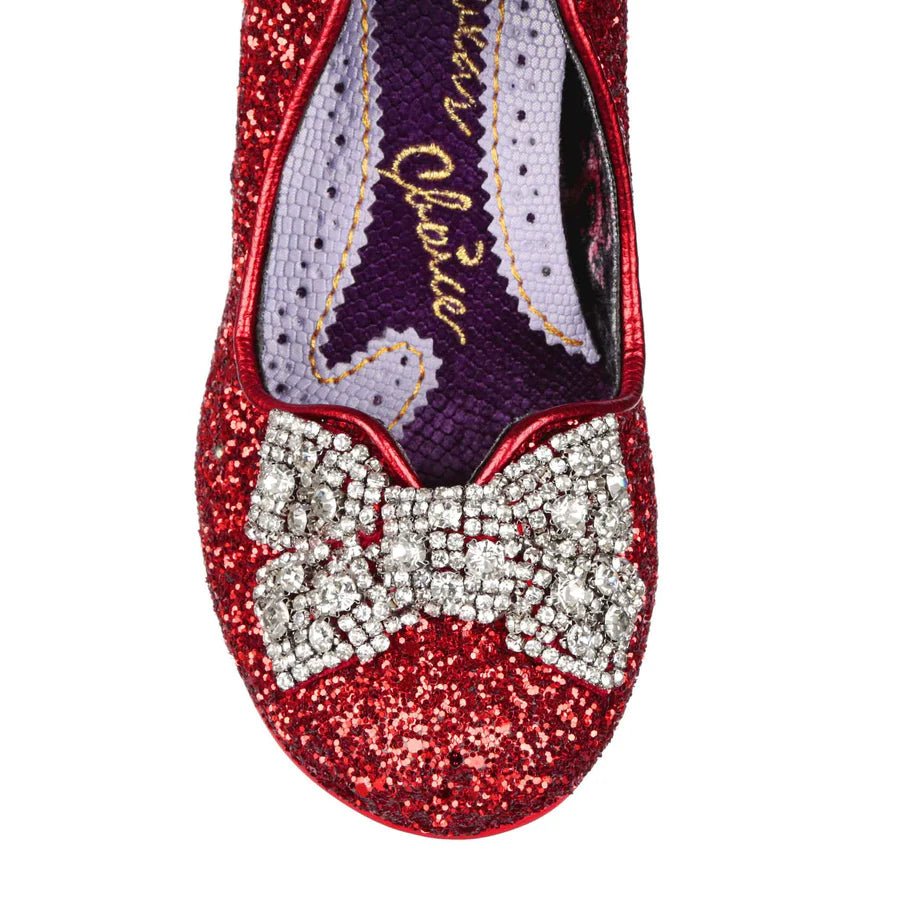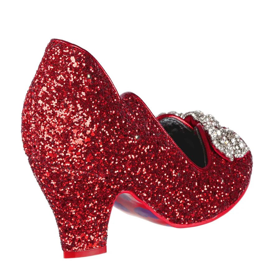 Deck The Halls with shoes so shiny, fa la la la la! You won't be able to get it out of your head when you slip on these glimmering red glitter mid heel shoes. The glitter encrusted shoe and heel are topped with a rhinestone covered bow, and if that wasn't sparkling enough, watch as the embedded LED lights twinkle as you walk!