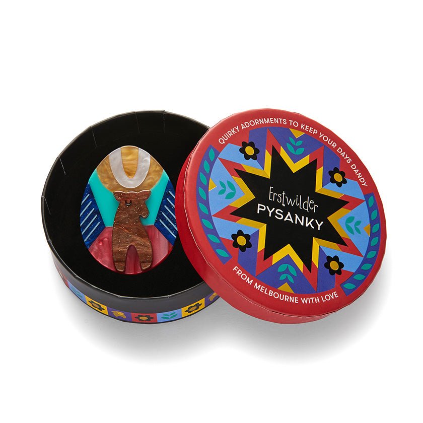 Please be aware that resin is akin to ceramic and glass and therefore may be damaged if dropped or knocked. Due to the use of high quality silver-plating in our brooch clasps, tarnishing and oxidisation can occur, producing black and gold discolouration. As with all silver products, you can simply restore it using a silver cloth. Keep your Erstwilder companion neatly tucked away in this box when not being worn, avoid contact with perfumes, lotions, water and excessive sunlight and you’ll have a trusted friend for years to come.