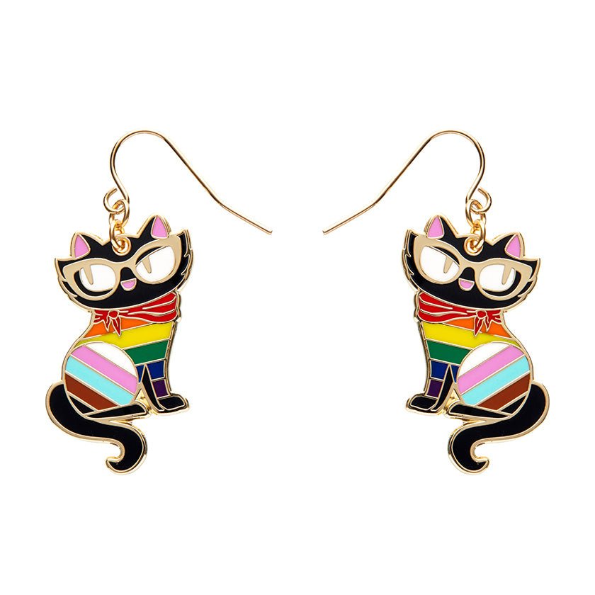 Elissa the Rainbow Cat Enamel Drop Earrings