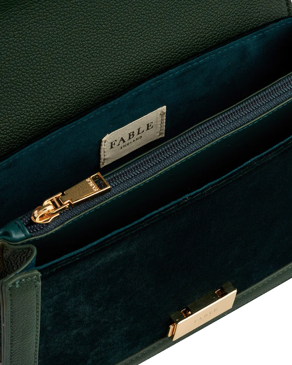 With a nod to forest folklore, this Crossbody Bag honours the gentle woodland deer. Curled up on a carpet of fresh fern amongst magical toadstools and stars, the fawn is a symbol of innocence, peace and serenity. In a deep green hue, internal compartments and a magnetic fastening for easy access this bag combines charm and practicality. You'll want to take it everywhere.