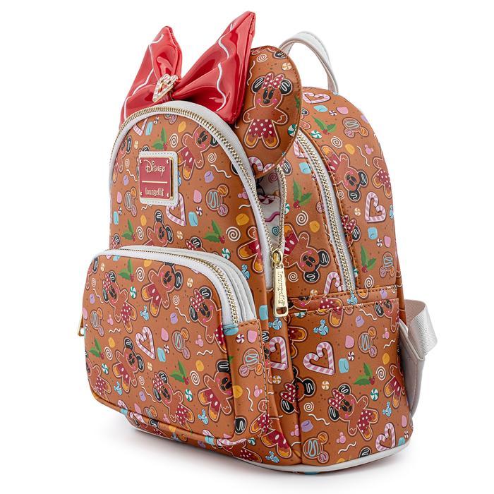 ‘Tis the season for sweet treats! Claim your holiday treat as the Loungefly Disney Gingerbread AOP Mini Backpack with Ears Headband. This delightful mini backpack design features Mickey and Minnie Mouse as gingerbread cookies along with Mickey ears shaped cookies, holly leaves, candy canes, and other assorted candies. The pattern on the Disney Ears headband matches the bag perfectly, and the center bow looks like it’s decorated with icing and a heart candy. The backpack even has front holder specifically for carrying your headband. This spectacularly sweet set is the perfect finishing touch to a Disney winter wardrobe. The Loungefly Disney Gingerbread AOP Mini Backpack with Ears Headband is made of vegan leather (polyurethane). Bag has adjustable shoulder straps, sturdy metal hardware, and features: headband holder, and printed details. Take note of the coordinating pattern of the inside lining fabric. Disney Gingerbread AOP Patent Bow Heart Headband is made of vegan leather (polyurethane) and features: vegan leather bow applique, enamel charm, printed, and embroidered details. This set is an officially licensed Disney product. Bag Dimensions: W 22.8 cm x H 26.7 cm x D 11.5 cm (Please note: width is measured across the bottom of the bag.) Headband Measurements: W 26.7 cm x H 21.6 cm x D 2.5 cm (One size fits most.)