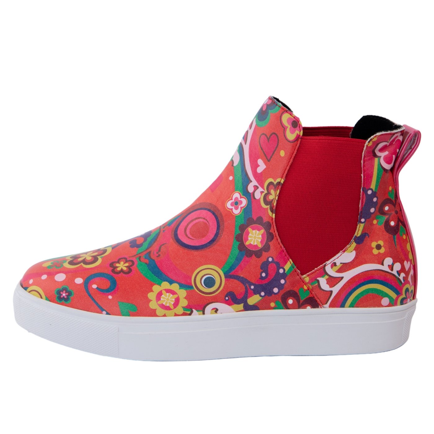 Our Hi Tops have a white rubber sole and are made from PU vegan leather ensuring they hold their shape beautifully and won’t soak up the rain!