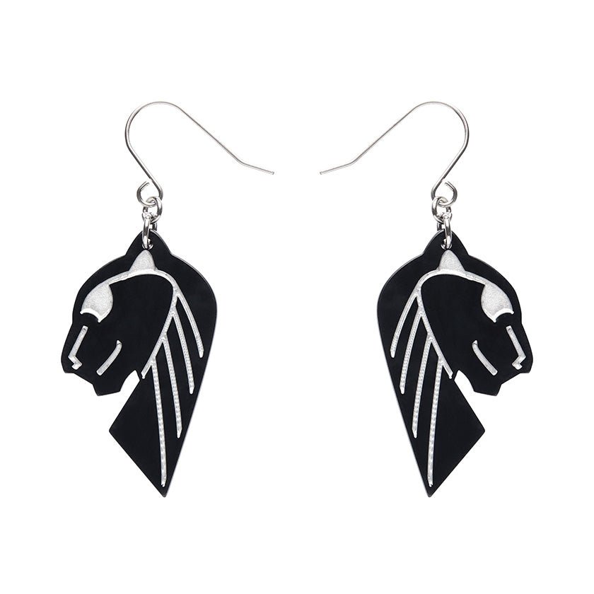 Jaguar Solid Black Resin Drop Earrings - Silver