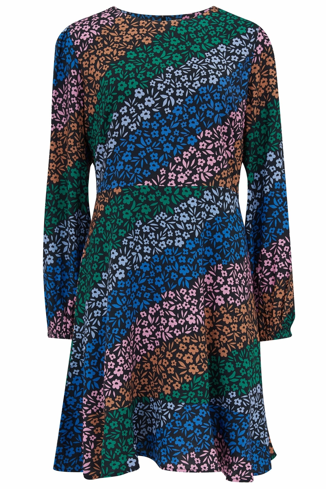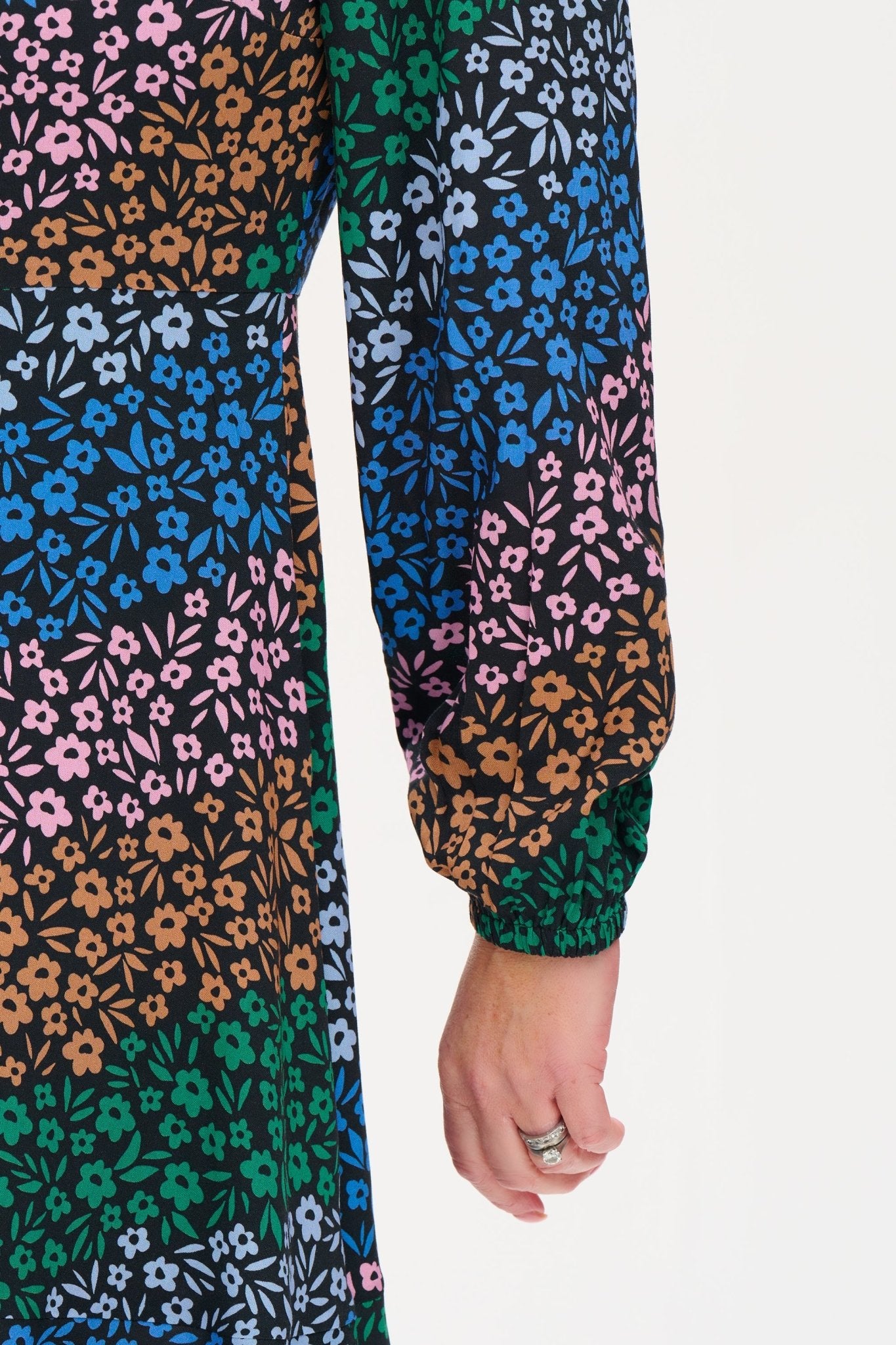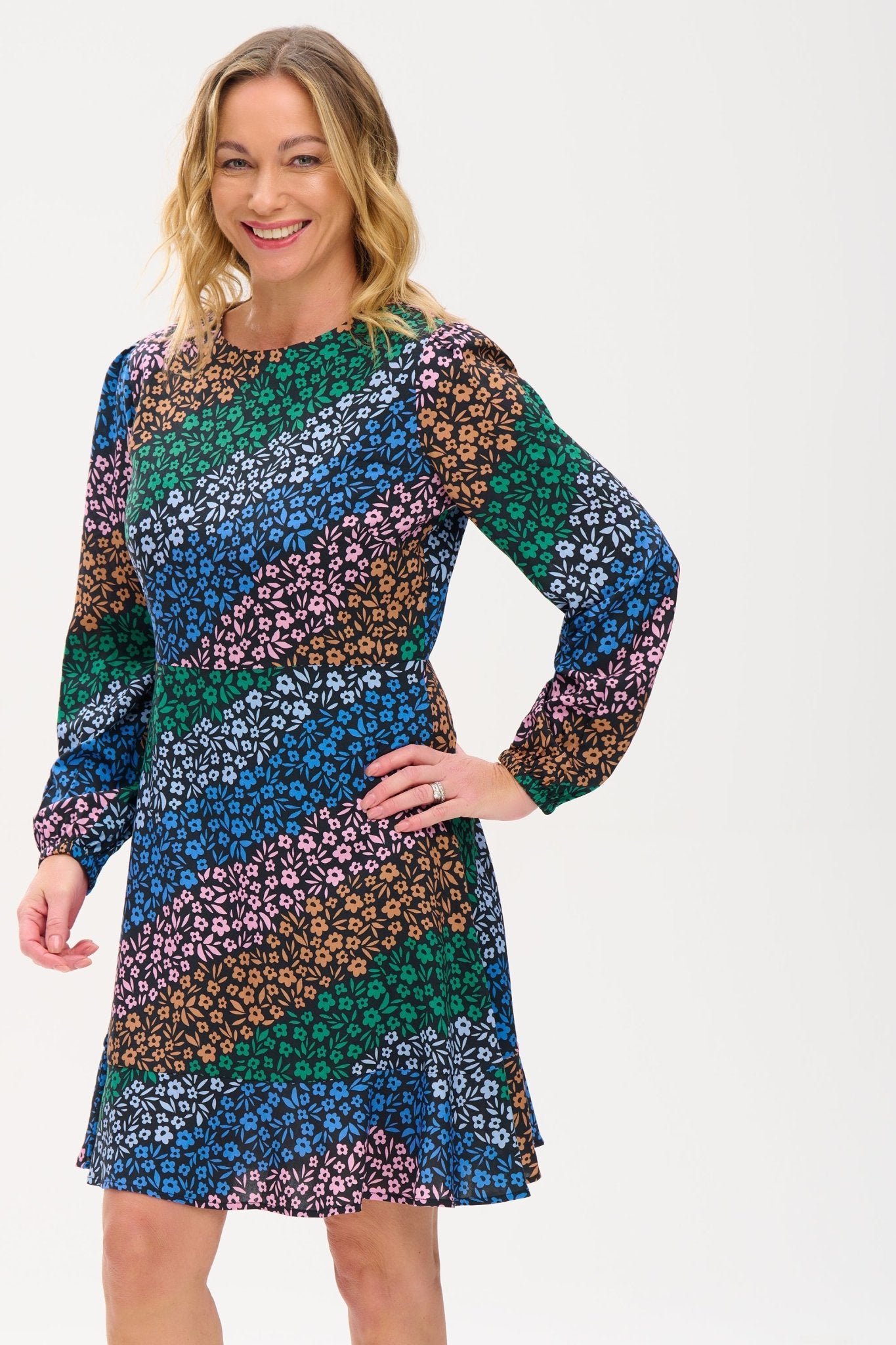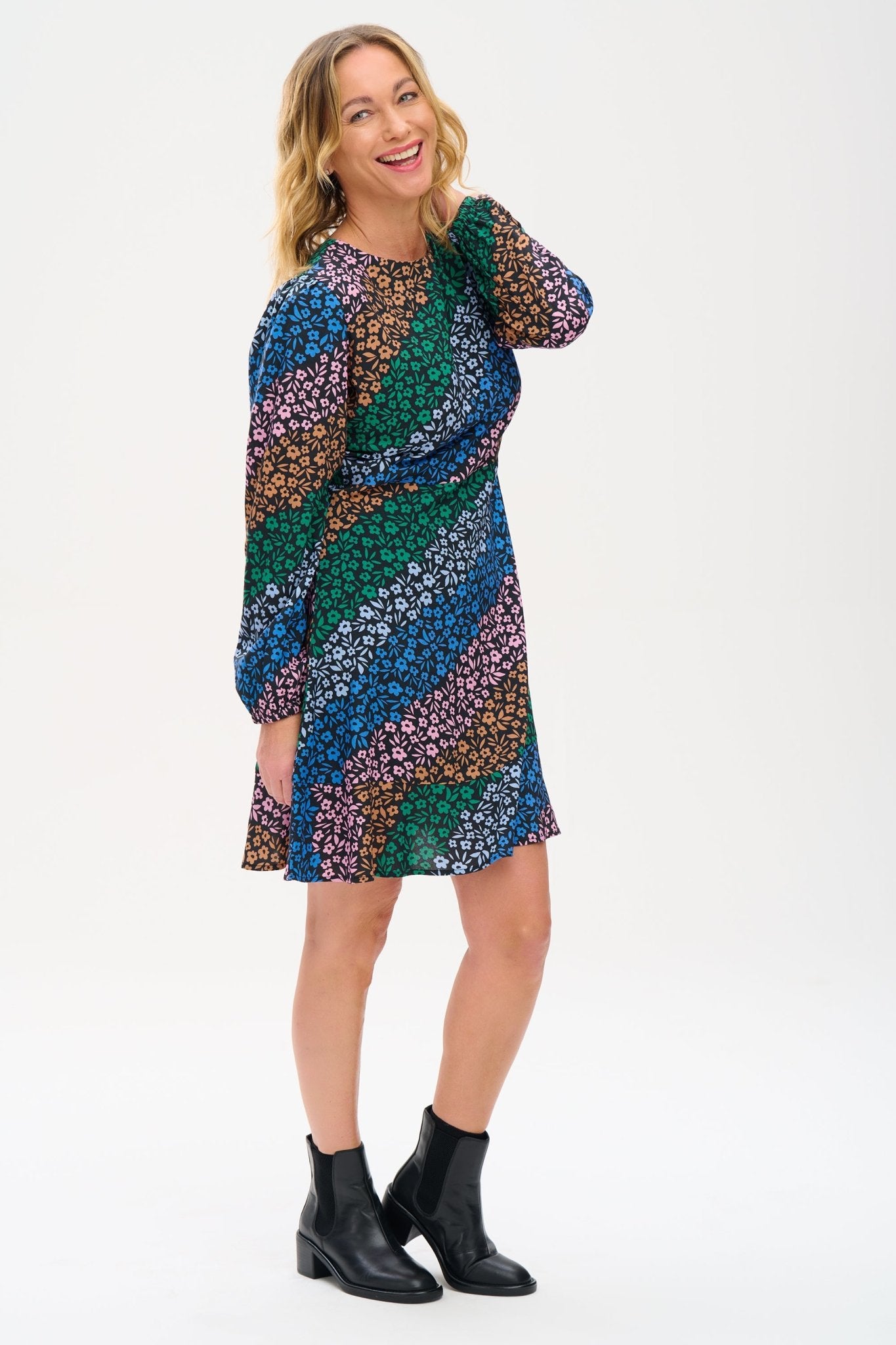 Smart yet playful, the new Juliette Fit & Flare Dress shape features gathers at the shoulders, with full length blouson sleeves, a fitted waist and a frill hem skirt. This dress showcases our Hand Painted Floral print fabric.