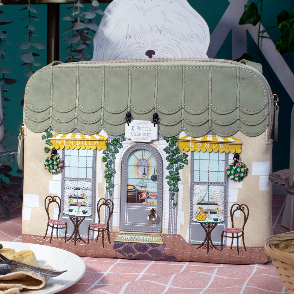 Meet the La Petite Crêperie Bella Bag! This stunning vegan leather handbag has two zip compartments and multiple pockets, making it perfect for work, school, or leisure. With an adjustable strap for easy carrying, it’s both practical and stylish. The Parisian crêperie design with vibrant 3D details is bound to fascinate your friends and family.