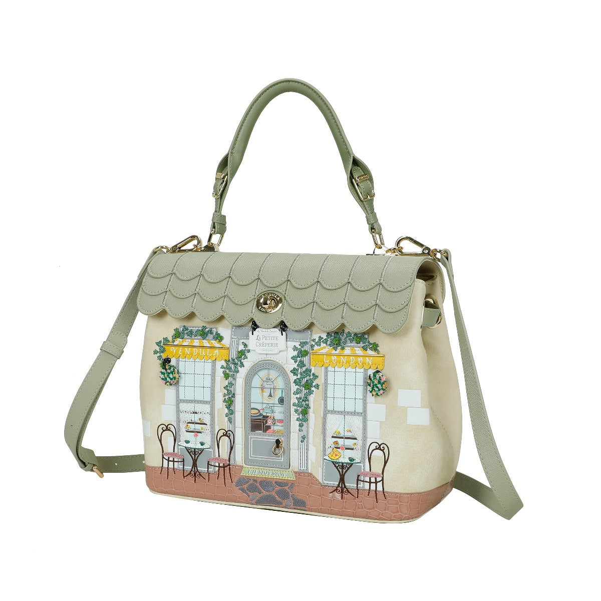 Bonjour from Paris! The La Petite Crêperie Grace Bag is a charming vegan leather handbag that will delight any Vendulette with a sweet tooth. Perfect for daily use, it’s spacious enough to carry all your essentials, including your wallet, phone, and even a small water bottle. It features a detachable handle and strap, giving you the flexibility to carry it as a handbag, shoulder, or crossbody bag depending on your mood. How picturesque is this Parisian crêperie terrace?