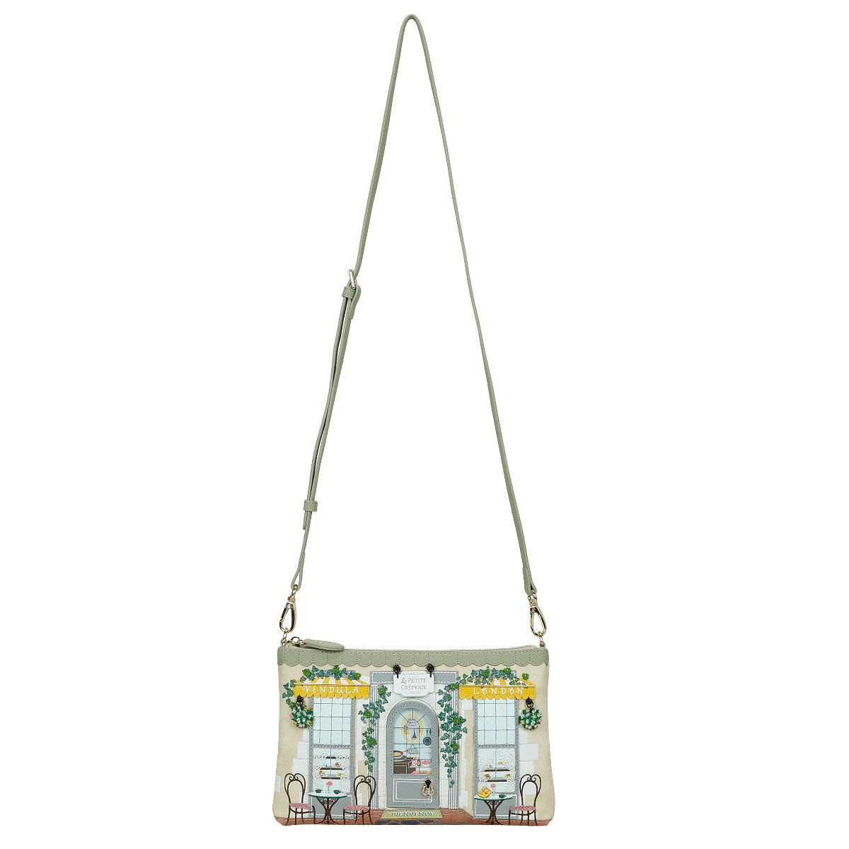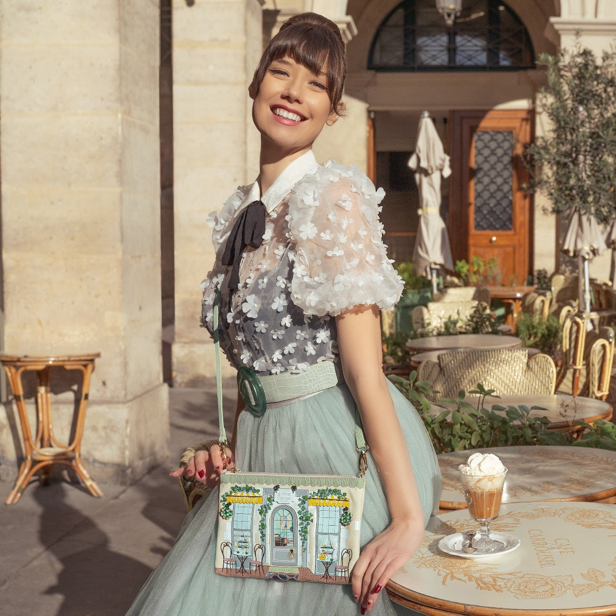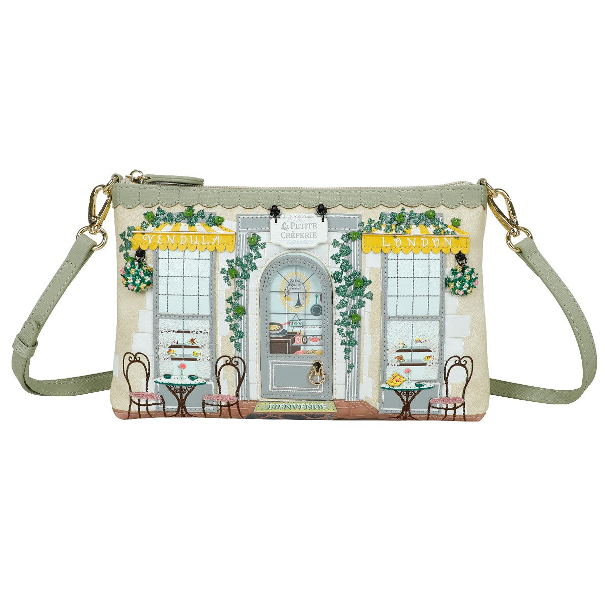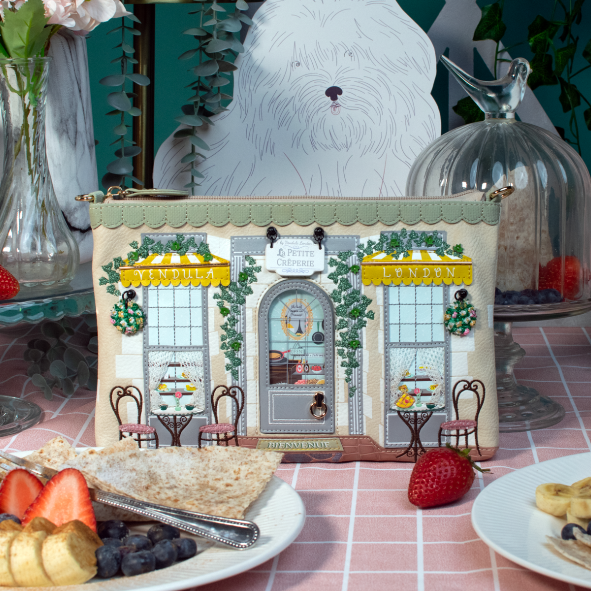 Step out in style with the La Petite Crêperie Kate Bag! This versatile vegan leather accessory can be used as a shoulder, crossbody, pouch, or cosmetics bag by clipping the strap on or off. The secure zip closure keeps your essentials safe, and its pretty beige and green colour scheme is adorned with an appetizing crêperie artwork.