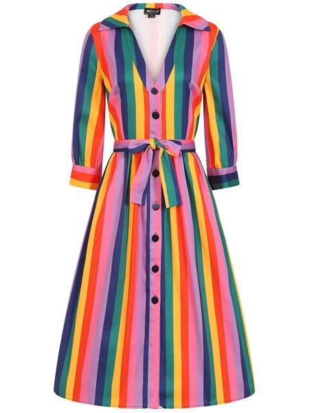 Vintage inspired shirt dressFeatures stunning bespoke print of vertical rainbow stripes