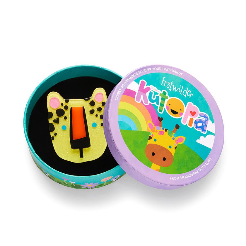 Please be aware that resin is akin to ceramic and glass and therefore may be damaged if dropped or knocked. Due to the use of high quality silver-plating in our brooch clasps, tarnishing and oxidisation can occur, producing black and gold discolouration. As with all silver products, you can simply restore it using a silver cloth. Keep your Erstwilder companion neatly tucked away in this box when not being worn, avoid contact with perfumes, lotions, water and excessive sunlight and you’ll have a trusted friend for years to come.