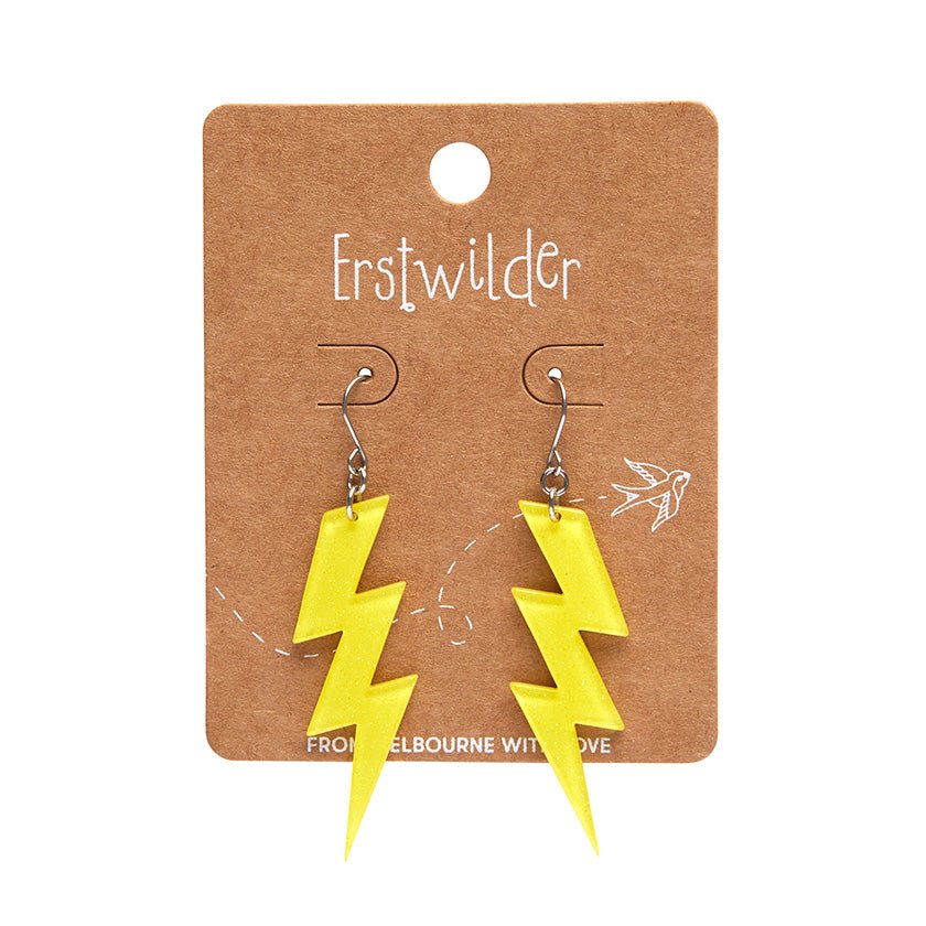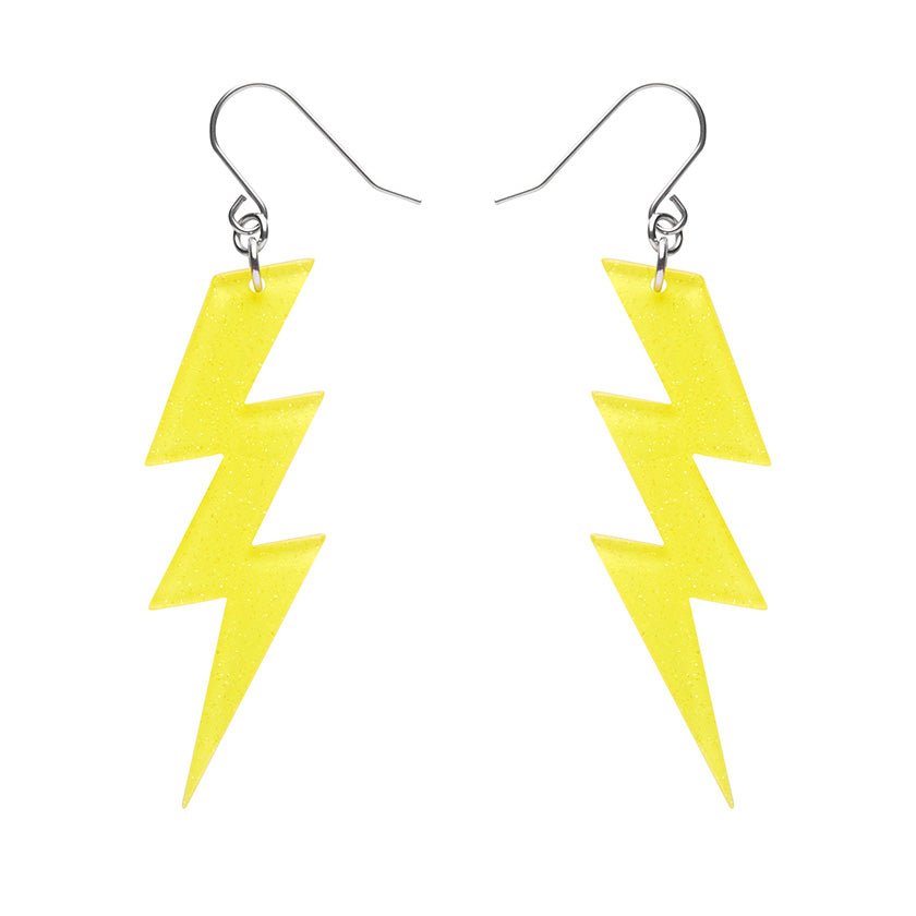 Lightning Bolt Glitter Resin Drop Earrings - Yellow
