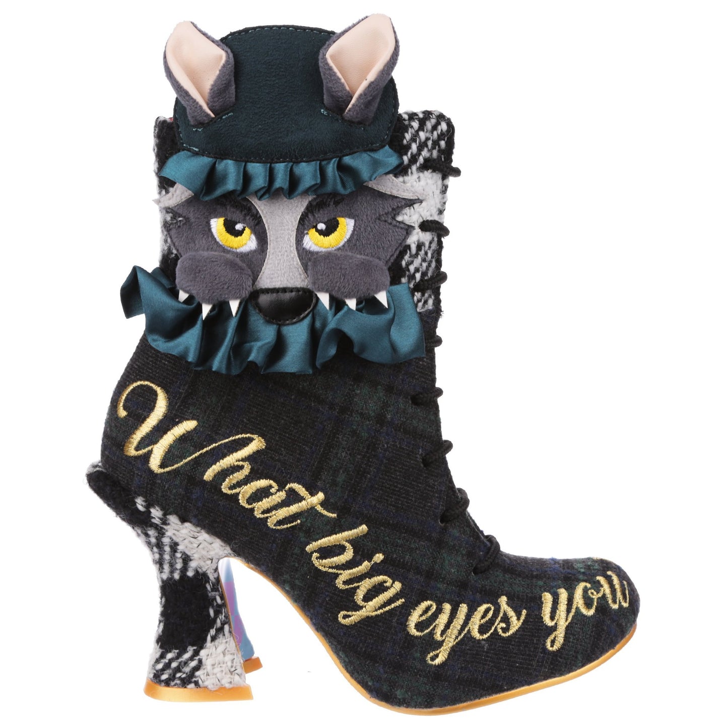 Why Grandma, what gorgeous boots you have!' 'All the better to feel fierce in my dear!' Feel like you are starring in your own fairy tale in these stunning and fun boots! A luxurious dark tartan upper is paired with striking red and white plaid to really make these beauties pop! The stars of the show are 'Grandma' and Little Red on the sides of the boots, paired with iconic phrases embroidered down the side, you'll definitely want to add these to your collection before you go adventuring next!