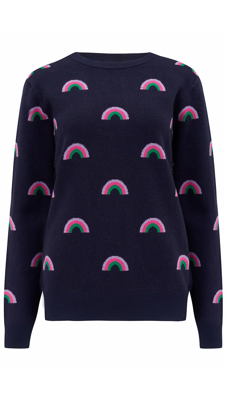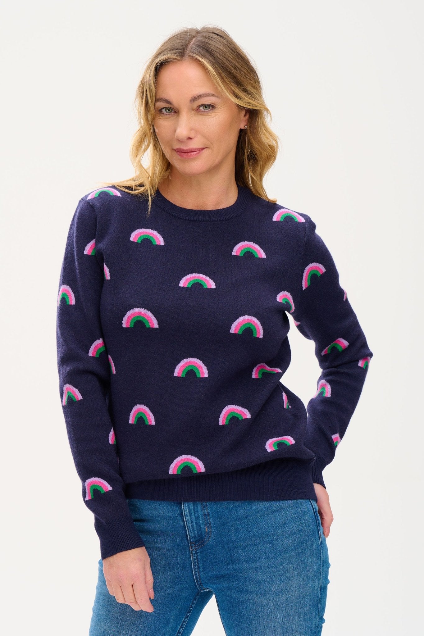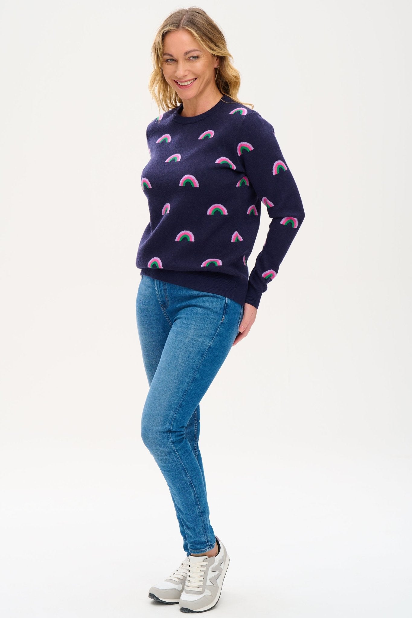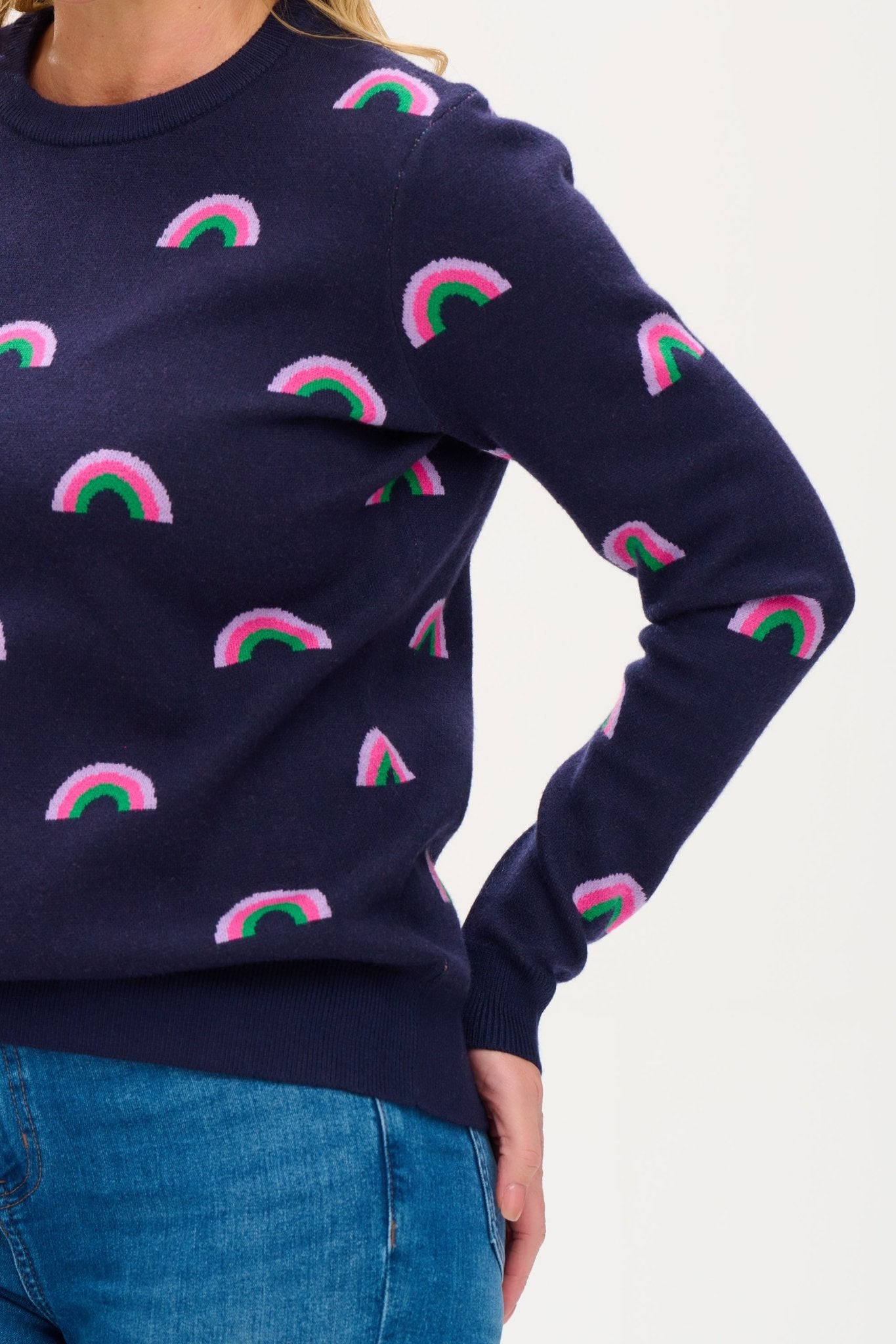 Lizzie Jumper in Navy with Repeating Rainbow Pattern