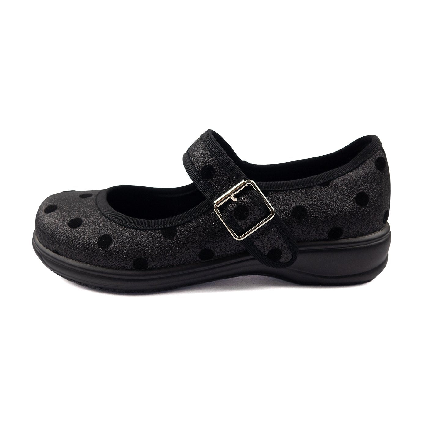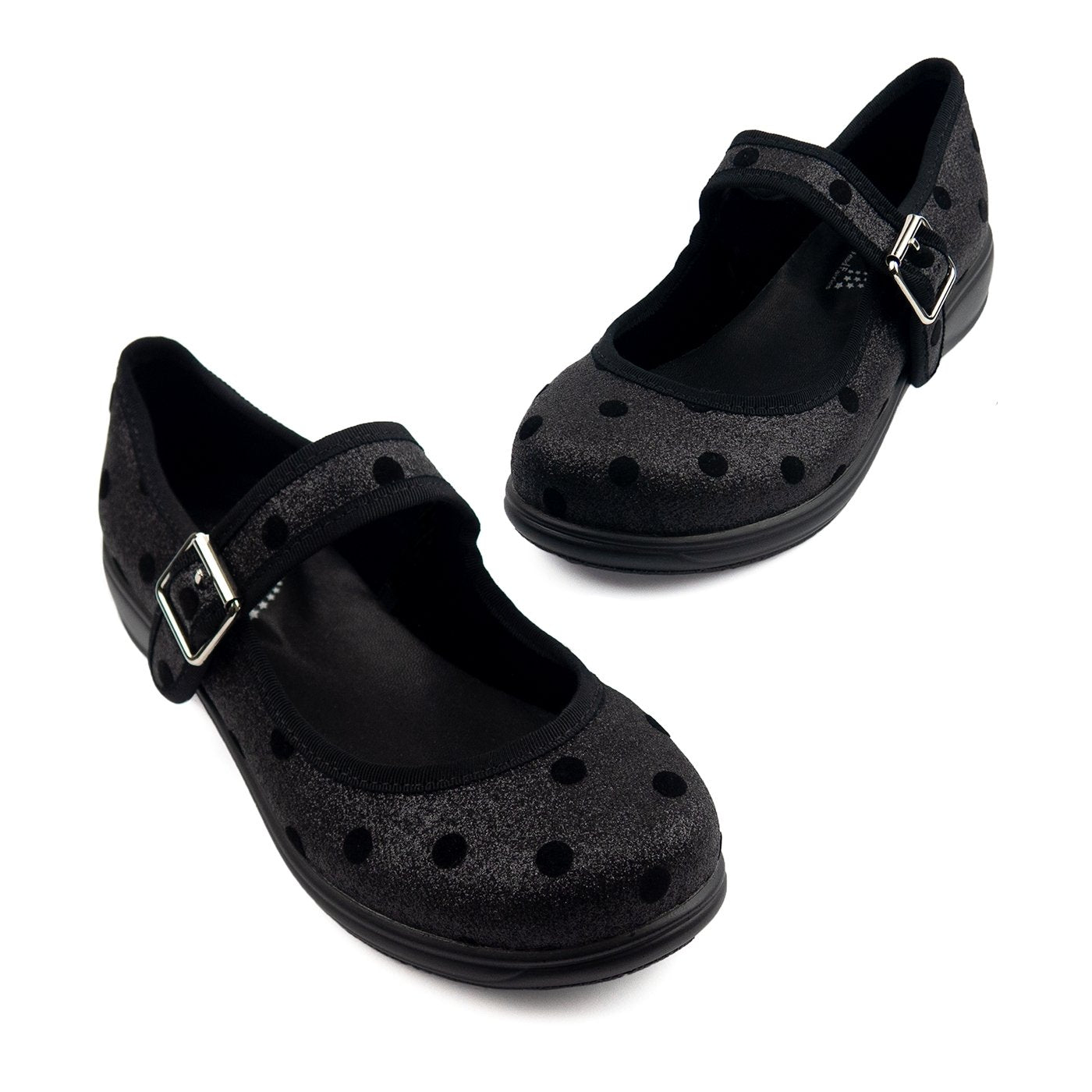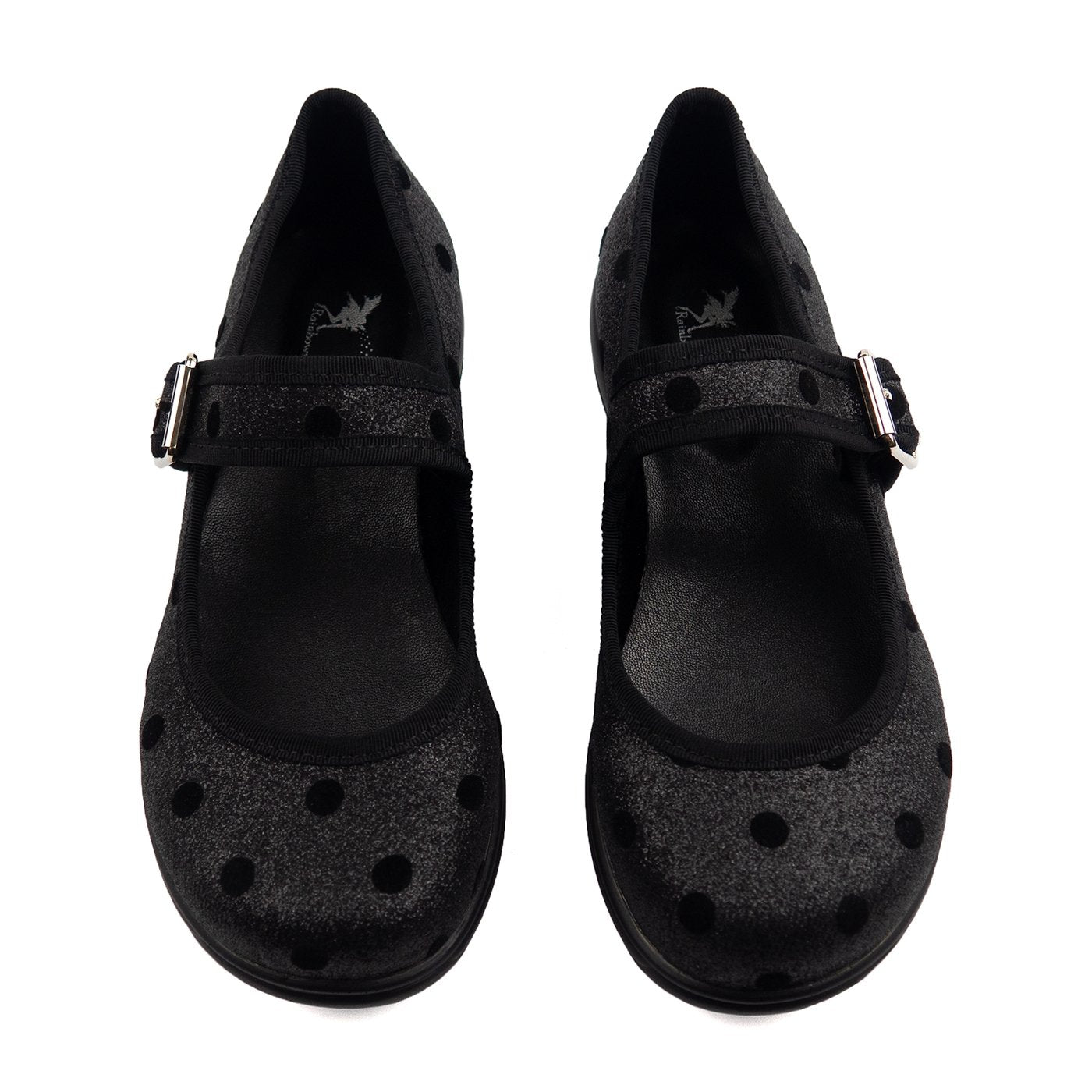 These Mary Janes are black glittery perfection… they have a lovely texture and amazing sparkle! These MJs have a lovely polka dot pattern over the glitter!