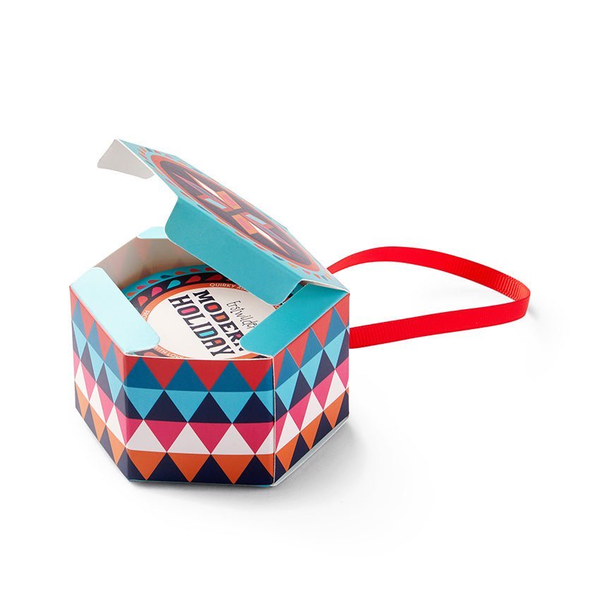 Perfect for gifting, even if that’s just to yourself, these mystery mini brooches feature three designs from the main Modern Holiday collection including our ‘Holiday Home’, ‘O Christmas Tree’, and ‘ Peace & Love’ brooches, only made more petite and packaged for a fantastically festive unboxing experience. Packaging has been designed to imitate Christmas baubles (though still including an Erstwilder gift box inside) allowing you, or the lucky recipient, to display them lovingly on your Christmas trees.