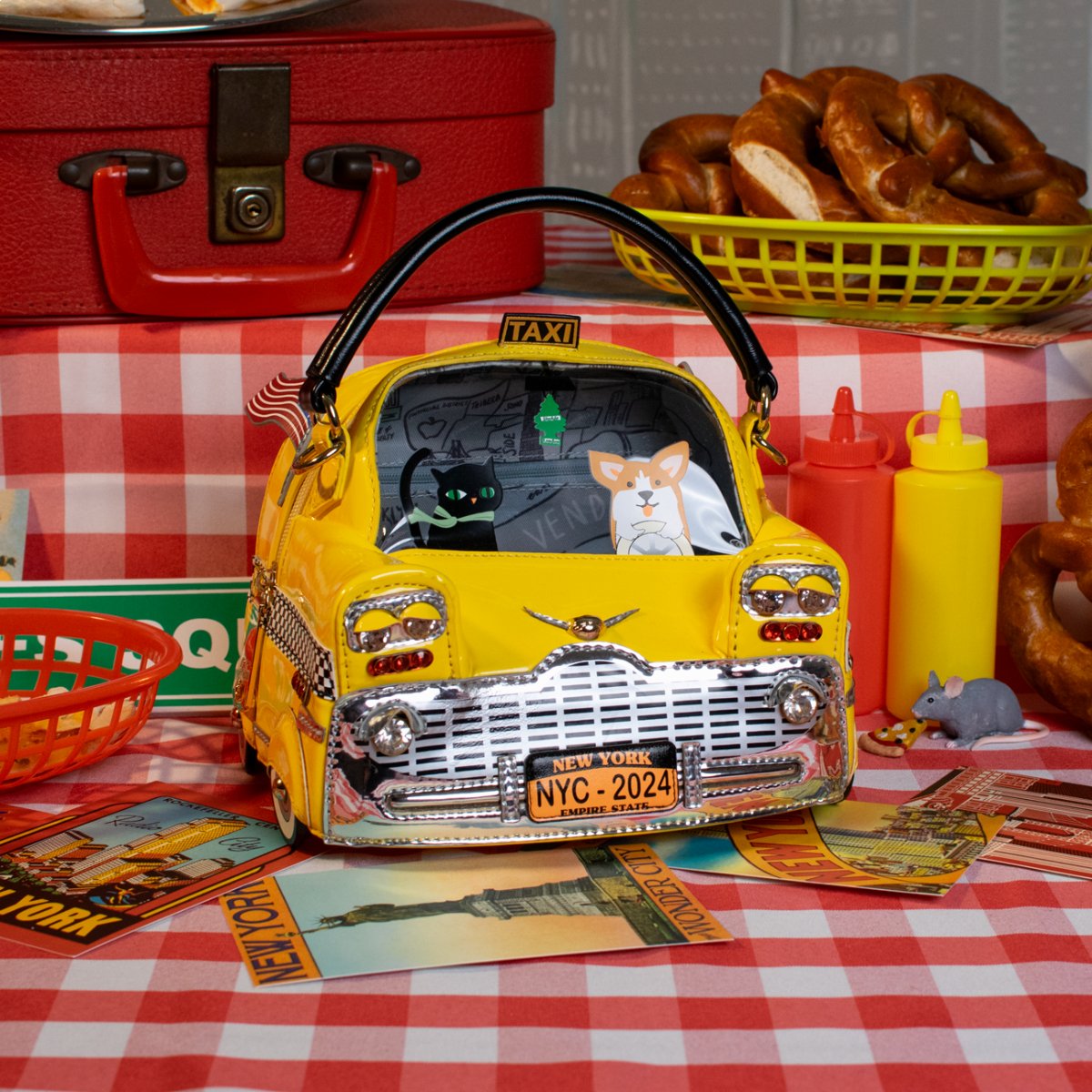 New York City wouldn’t be the same without its legendary yellow taxis! The New York City Cats & Corgis Taxi Grab Bag is made of vegan leather and can fit in all you need daily or on a special occasion, thanks to its spacious main compartment. It comes with a comfortable handle and a detachable strap, which can be adjusted when you carry the bag over the shoulder or crossbody. This new boutique handbag looks super-duper cool in the shape of a taxi, starring our famous Cat and Corgi living the American dream, on their way to new fun adventures. Do you fancy joining them? Just hop in and enjoy the ride!
