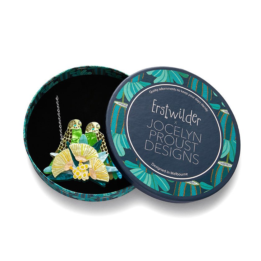 Please be aware that resin is akin to ceramic and glass and therefore may be damaged if dropped or knocked. Due to the use of high quality silver-plating in our brooch clasps, tarnishing and oxidisation can occur, producing black and gold discolouration. As with all silver products, you can simply restore it using a silver cloth. Keep your Erstwilder companion neatly tucked away in this box when not being worn, avoid contact with perfumes, lotions, water and excessive sunlight and you’ll have a trusted friend for years to come.