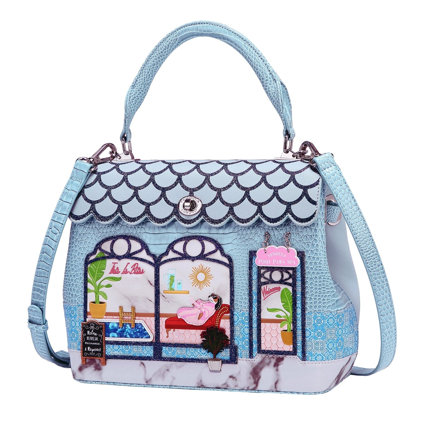 Our little spaniel is enjoying a little 'me time and we wish we could too! The Posh Paws Spa Grace bag looks stunning in blue faux croc textured vegan leather and has a scalloped roof that reminds us of a mermaid's tail. It is easy to carry thanks to the comfortable handle and detachable strap and has plenty of room for your essential. Who said it's a dog's life? We recon this one, at least, has got it made! talk about a life of luxury! Almost as luxurious as the look and feel of this lovely bag!