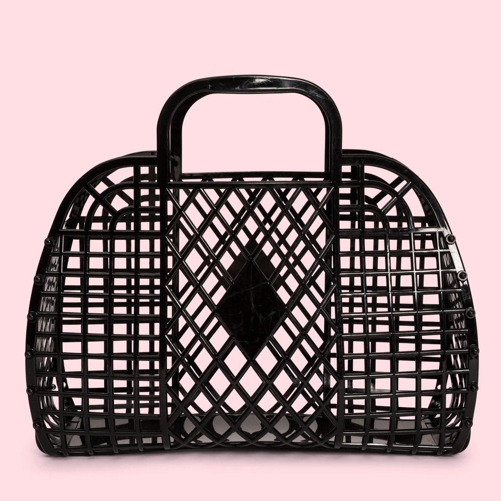 The original classic jelly bag, famous in Europe and America. Ideal for summer the large Retro Basket will hold all your daytime essentials – très chic and practical! It’s also a great size for carrying groceries, a knitting project or your kid’s beach toys. With ergonomic handles for comfy carrying it is shipped flat for easy assembly at home and can be gently undone by pushing the buttons back through. The perfect accessory for your holiday suitcase!