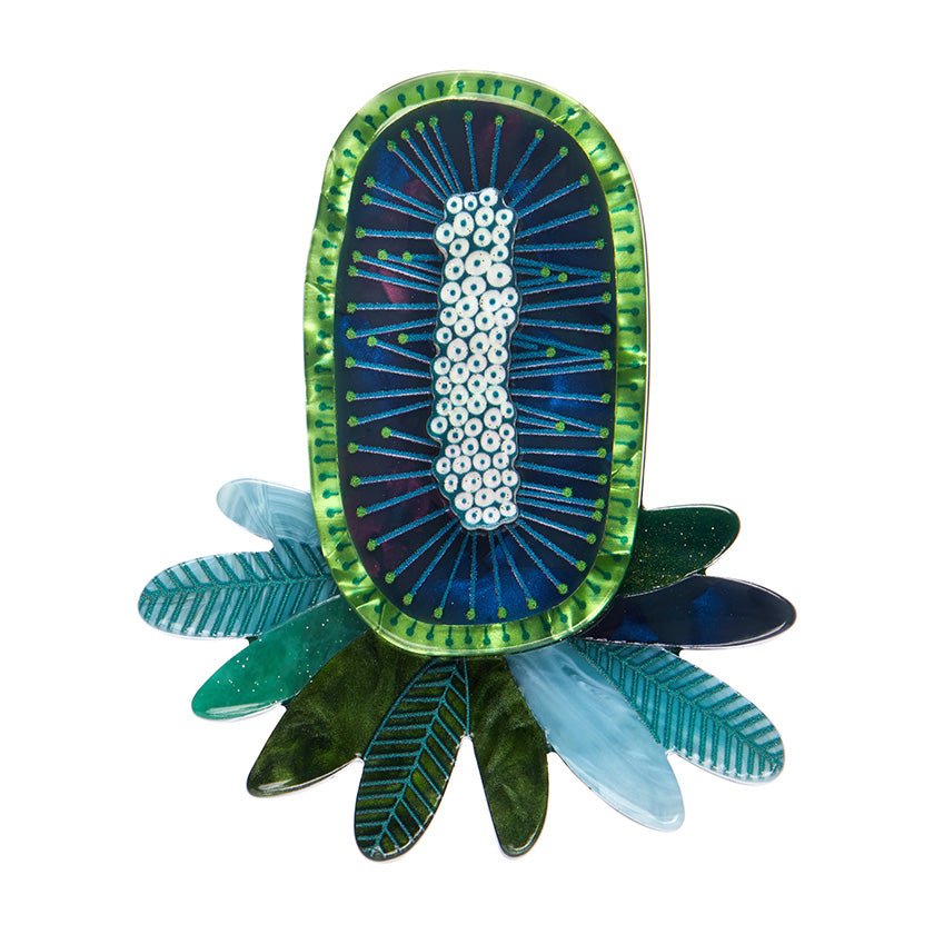 Please be aware that resin is akin to ceramic and glass and therefore may be damaged if dropped or knocked. Due to the use of high quality silver-plating in our brooch clasps, tarnishing and oxidisation can occur, producing black and gold discolouration. As with all silver products, you can simply restore it using a silver cloth. Keep your Erstwilder companion neatly tucked away in this box when not being worn, avoid contact with perfumes, lotions, water and excessive sunlight and you’ll have a trusted friend for years to come.