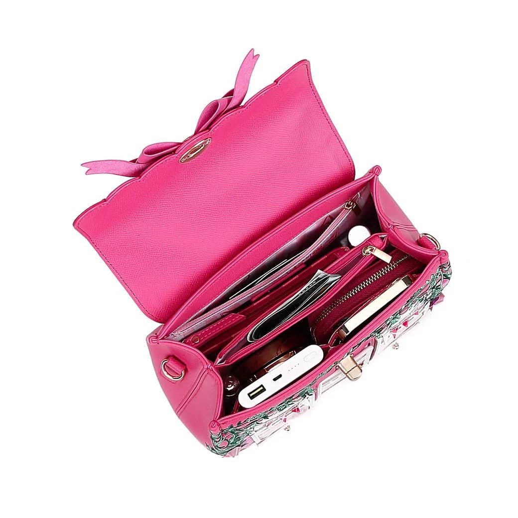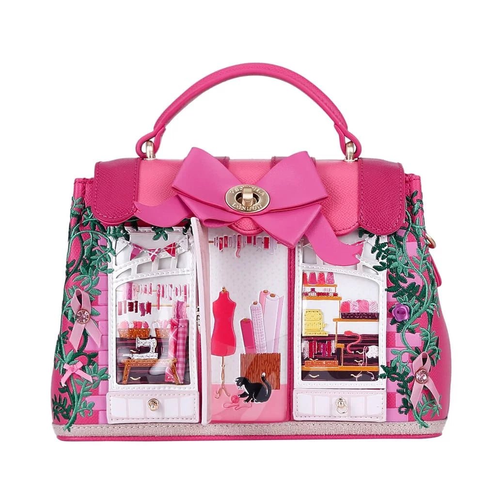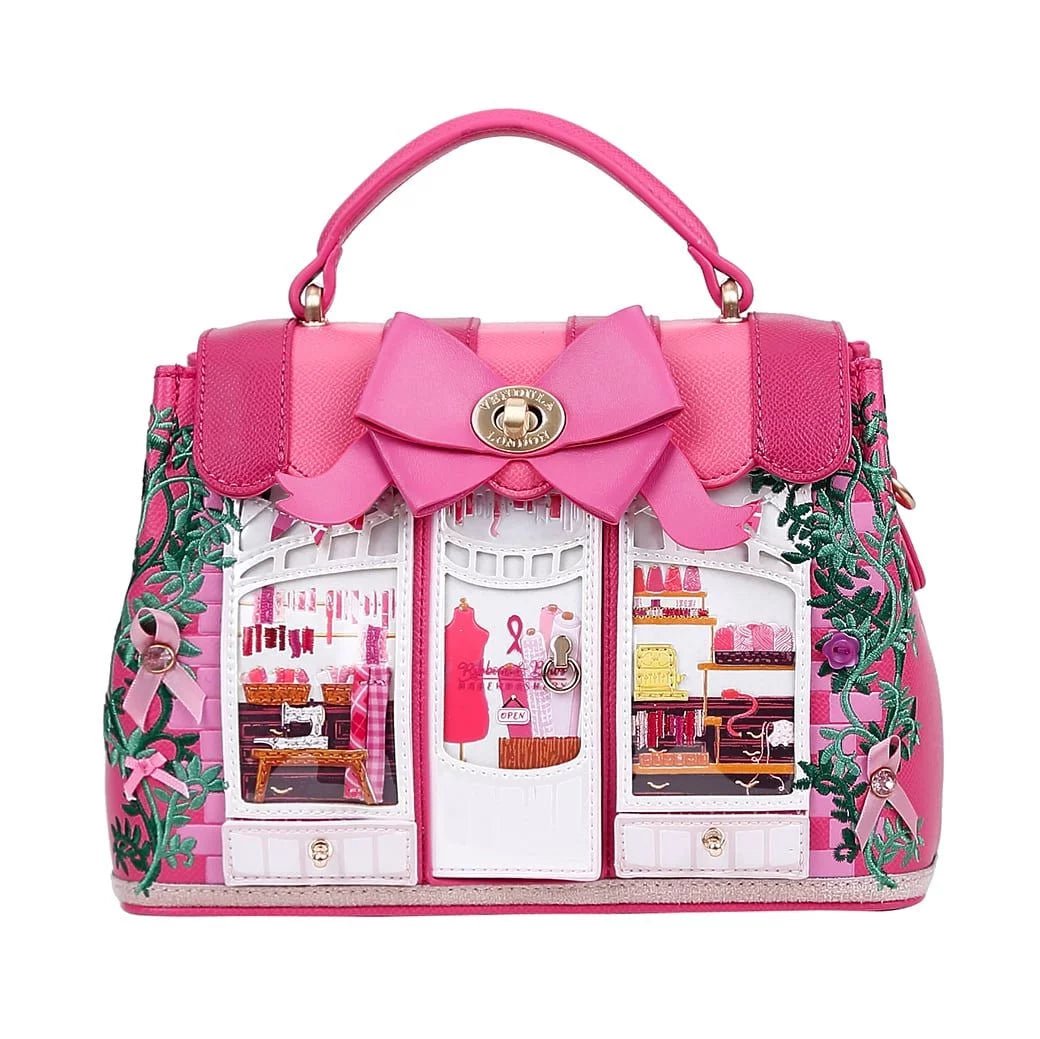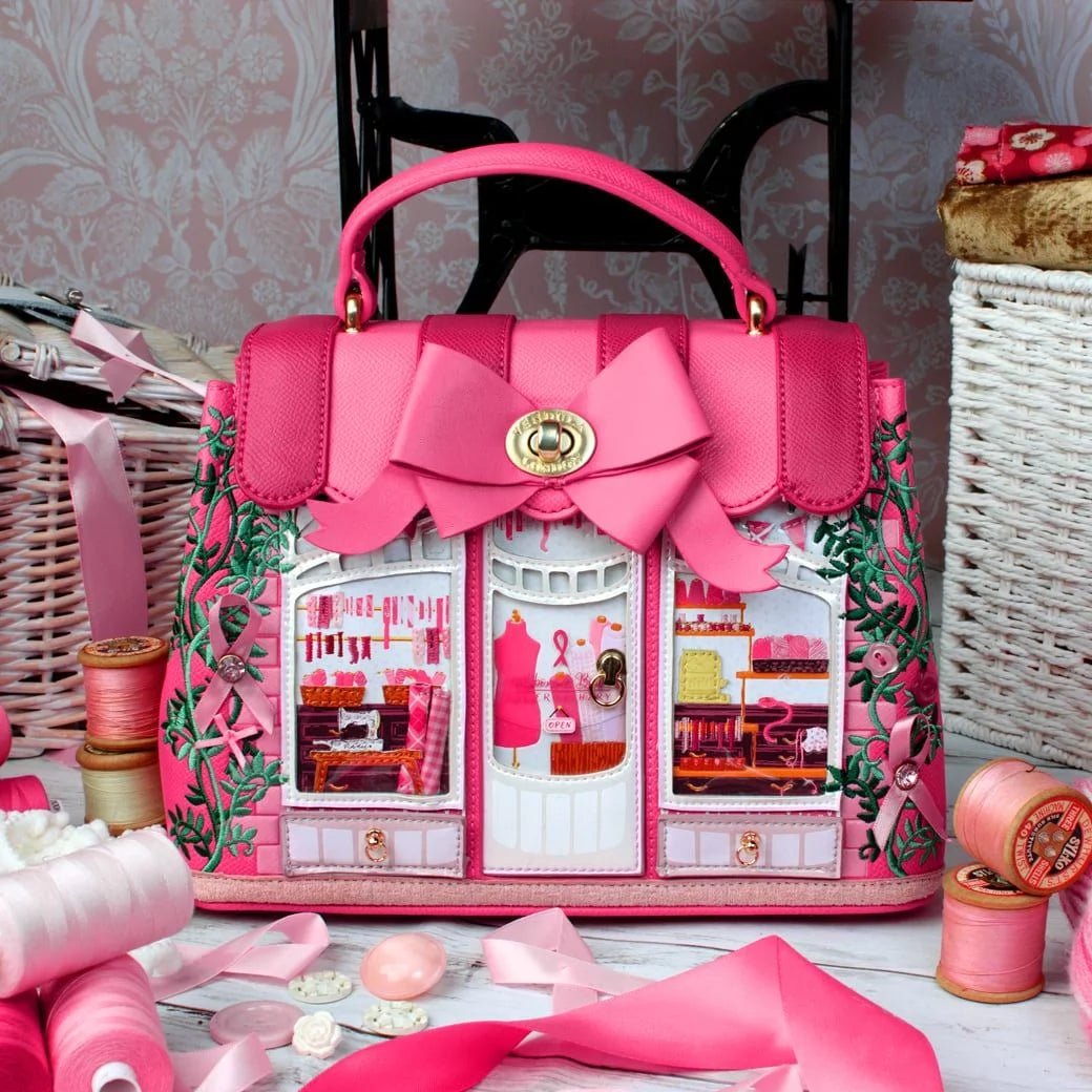 Small version of the Grace Bag, the Ribbons & Bows Haberdashery Mini Grace Bag is just as gorgeous! This vegan leather bag comes with a detachable strap which allows you to carry it in many ways, depending on the occasion. It can fit in all you need, and more, thanks to its roomy compartments and pockets. It is part of our new range in partnership with the Pink Ribbon Foundation and it comes with a special lining, as a reminder that by owning this bag, you can spread awareness of breast cancer wherever you go. And with such an eye-catching artwork, you will have lots to talk about with your loved ones and strangers alike!