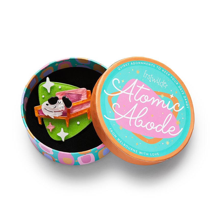 Care: Please be aware that resin is akin to ceramic and glass and therefore may be damaged if dropped or knocked. Due to the use of high quality silver-plating in our brooch clasps, tarnishing and oxidisation can occur, producing black and gold discolouration. As with all silver products, you can simply restore it using a silver cloth. Keep your Erstwilder companion neatly tucked away in this box when not being worn, avoid contact with perfumes, lotions, water and excessive sunlight and you’ll have a trusted friend for years to come.