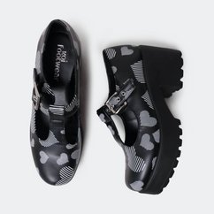 Eat your heart out with these Black 'Rivendell Heart Edition'. These Mary janes feature vegan leather construction, smooth textured with heart design overall, a T-strap design with adjustable buckle closures, and platform rubber soles