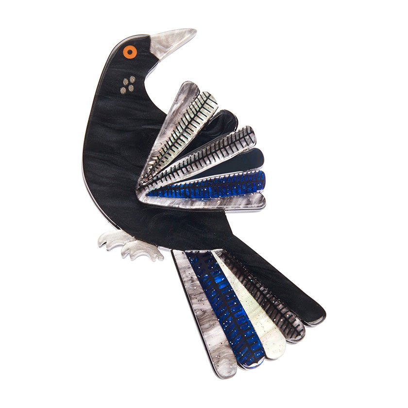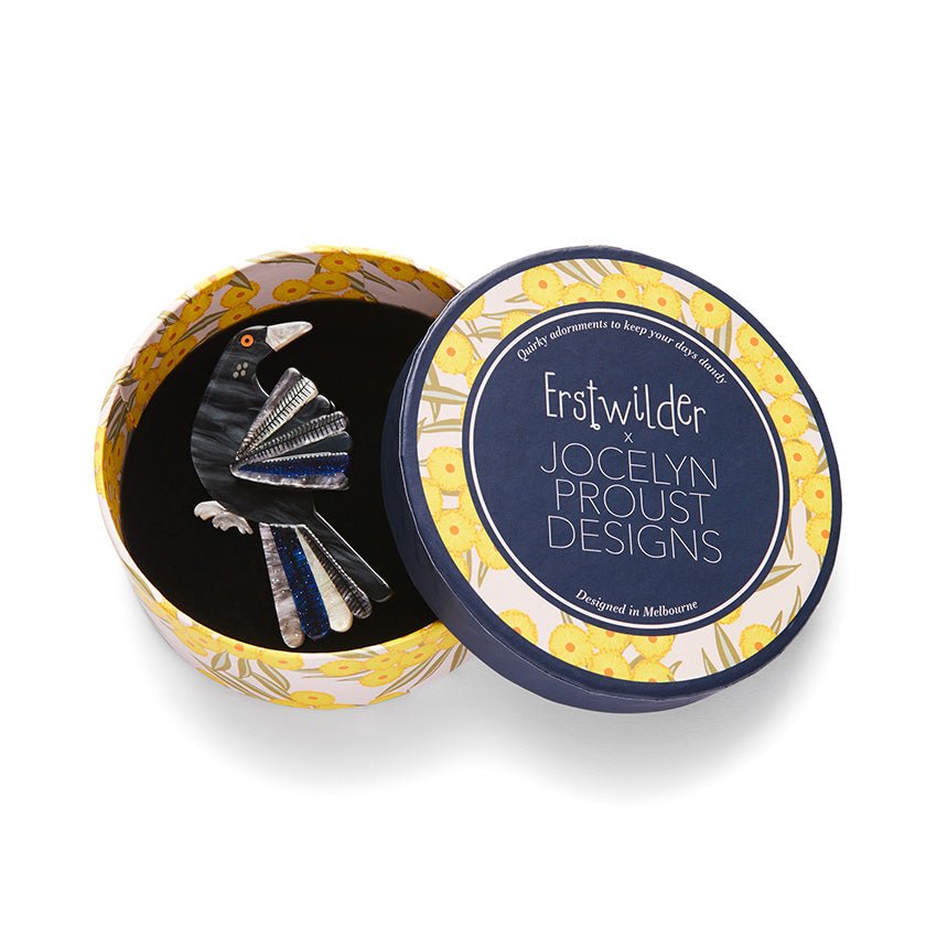 Please be aware that resin is akin to ceramic and glass and therefore may be damaged if dropped or knocked. Due to the use of high quality silver-plating in our brooch clasps, tarnishing and oxidisation can occur, producing black and gold discolouration. As with all silver products, you can simply restore it using a silver cloth. Keep your Erstwilder companion neatly tucked away in this box when not being worn, avoid contact with perfumes, lotions, water and excessive sunlight and you’ll have a trusted friend for years to come.