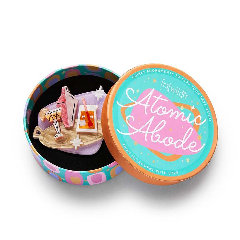 Care: Please be aware that resin is akin to ceramic and glass and therefore may be damaged if dropped or knocked. Due to the use of high quality silver-plating in our brooch clasps, tarnishing and oxidisation can occur, producing black and gold discolouration. As with all silver products, you can simply restore it using a silver cloth. Keep your Erstwilder companion neatly tucked away in this box when not being worn, avoid contact with perfumes, lotions, water and excessive sunlight and you’ll have a trusted friend for years to come.