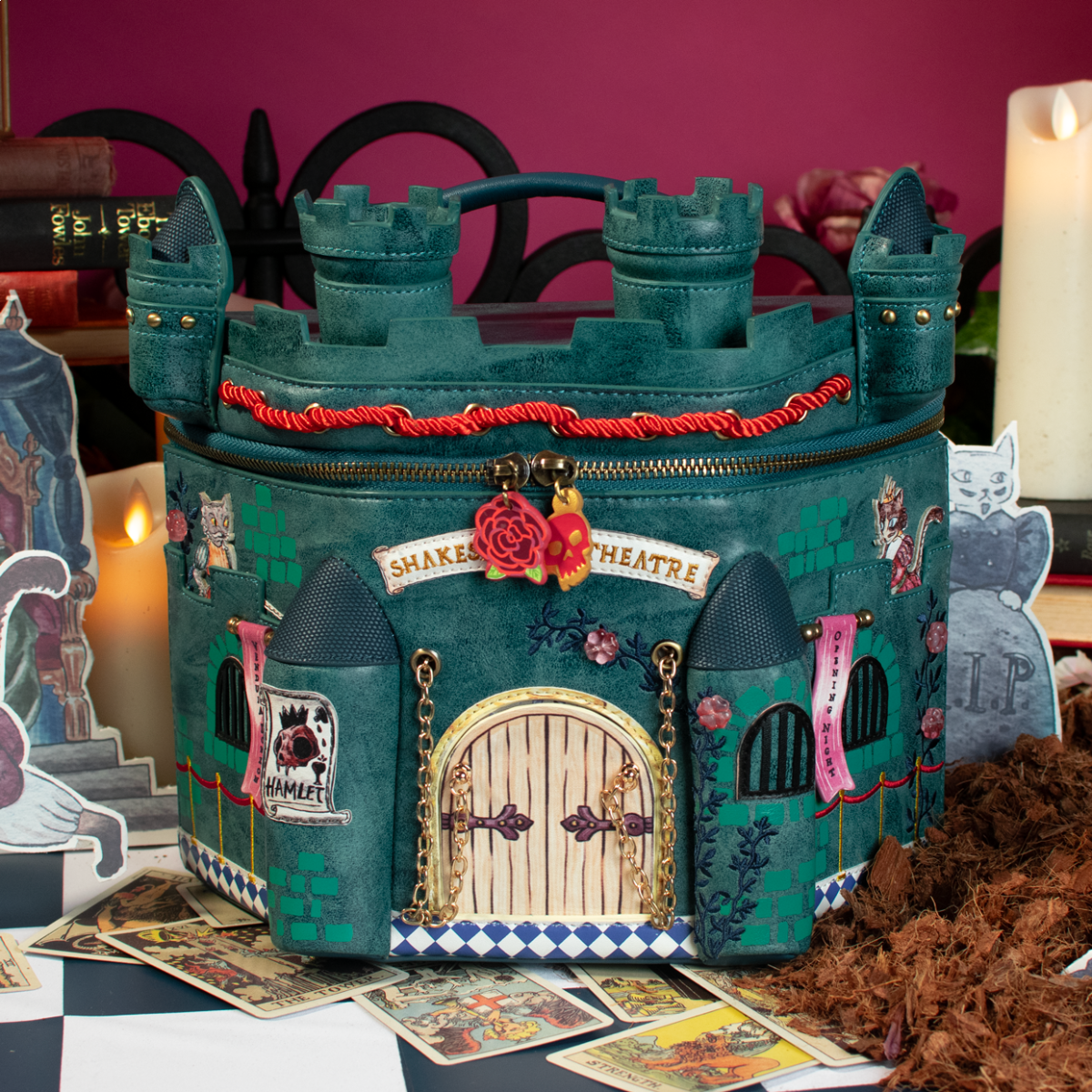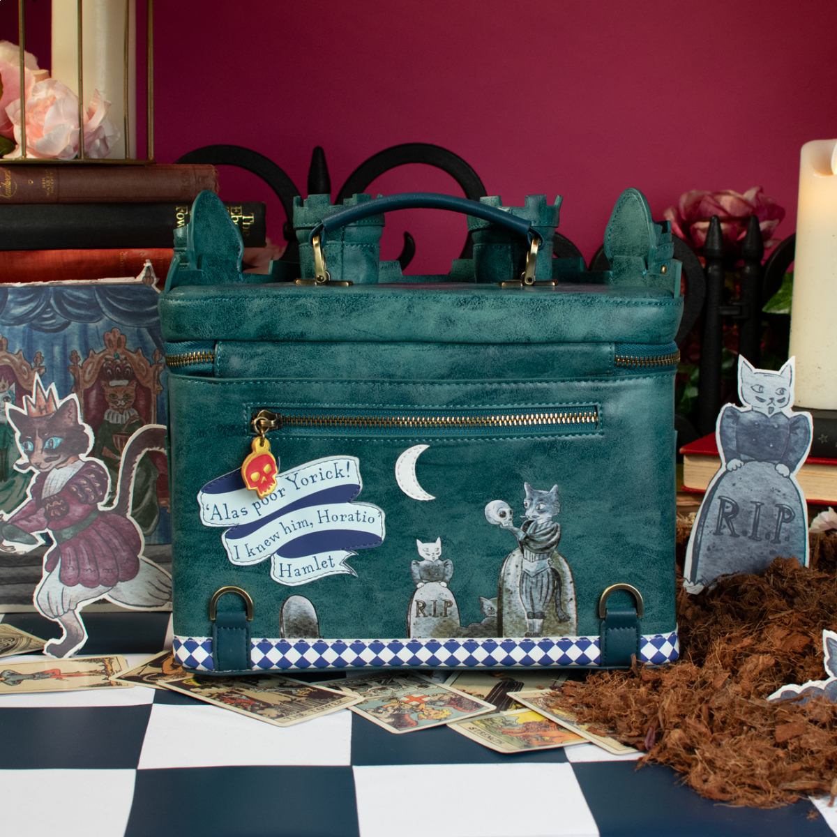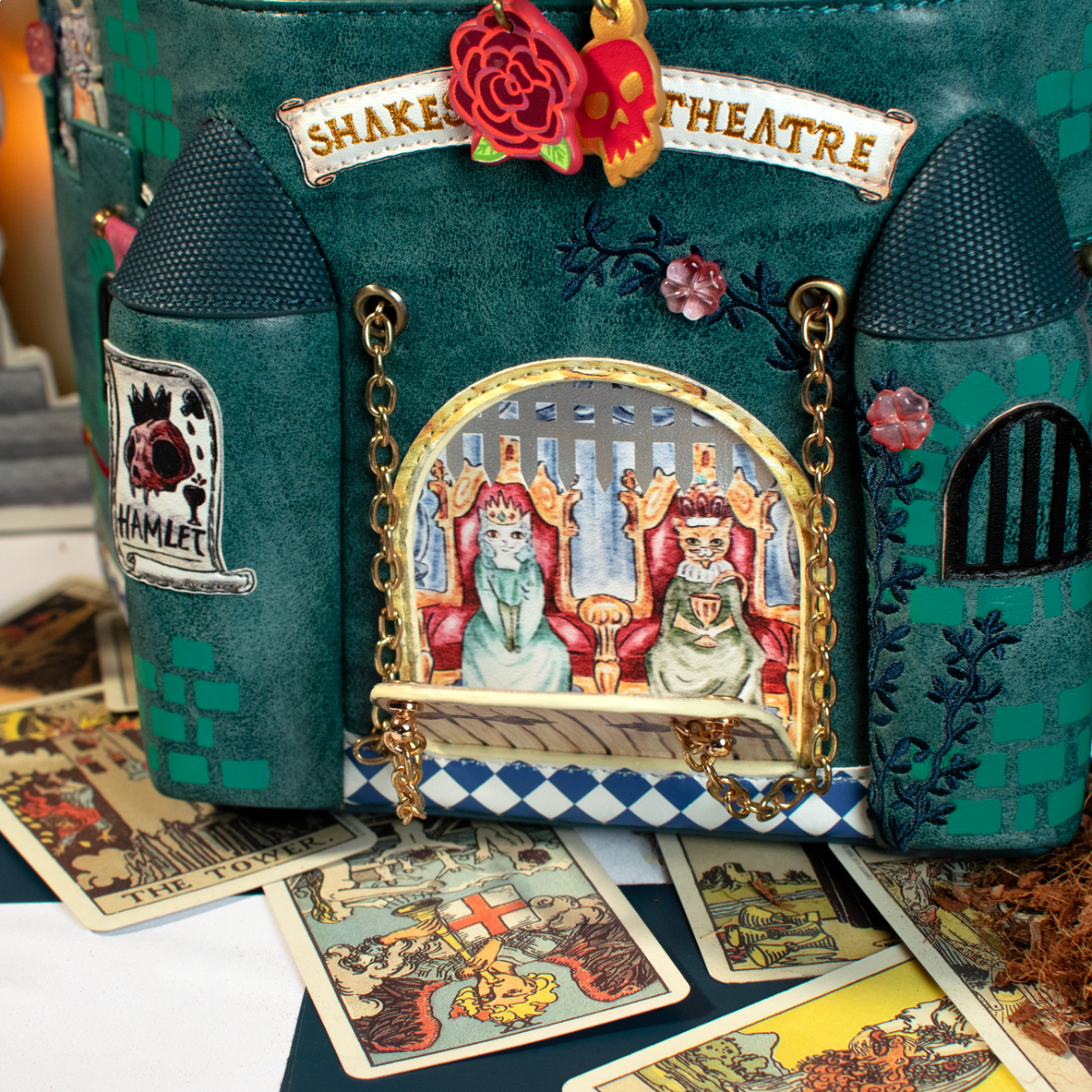 Every fashion queen deserves a castle—don’t miss out on the Shakespeare's Theatre - Hamlet Cora Bag! This limited edition vegan leather accessory comes with two detachable straps, allowing you to wear it as a backpack, handbag, shoulder, or crossbody bag. It fits all your essentials, making it ideal for making a statement on any occasion. If your motto is “the quirkier, the better,” this castle-shaped bag with extraordinary details will not disappoint! Ready to join this royal tragedy? Then lower the drawbridge and bow to the King and Queen of Denmark!