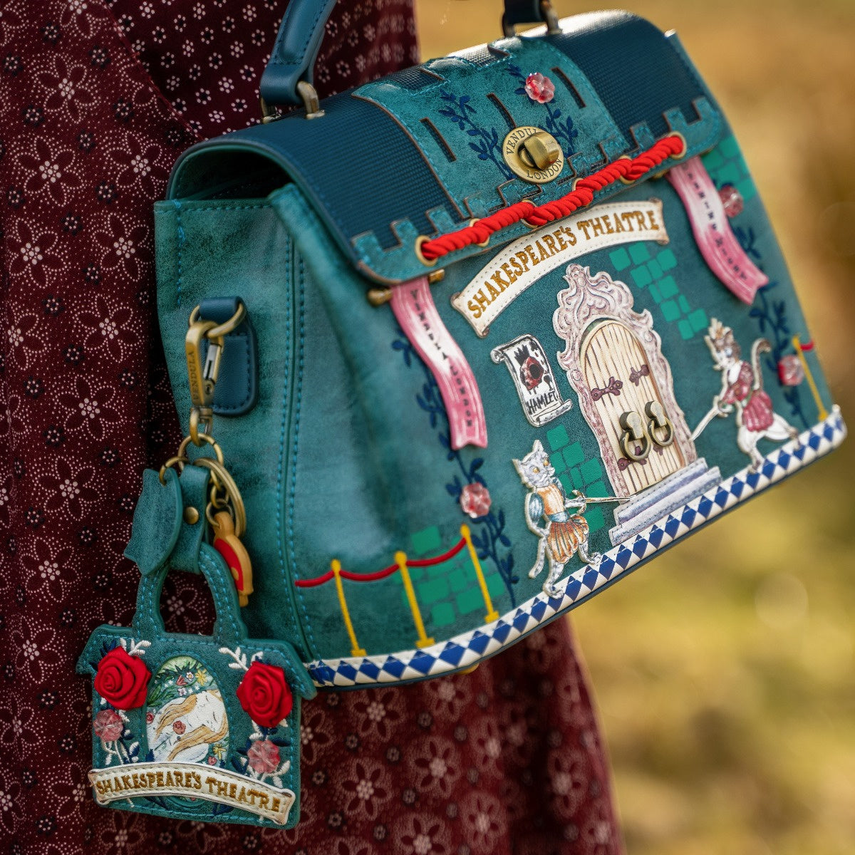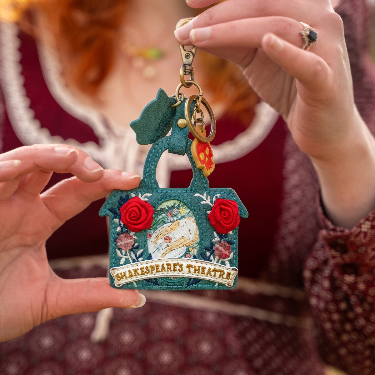 Ready for a curtain call? The Shakespeare's Theatre - Hamlet Key Charm is the final piece in this limited edition range, and it’s a little gem! Shaped like a handbag, it can be attached to your Shakespeare’s Theatre – Hamlet bag (or any other Shakespeare’s Theatre piece), or used as a keyring to give your keys a dramatic flair. This vegan leather accessory is magnificent, featuring Ophelia floating on water and surrounded by printed and 3D flowers. We have a feeling this key charm won’t be available for long, so order yours before it’s too late!