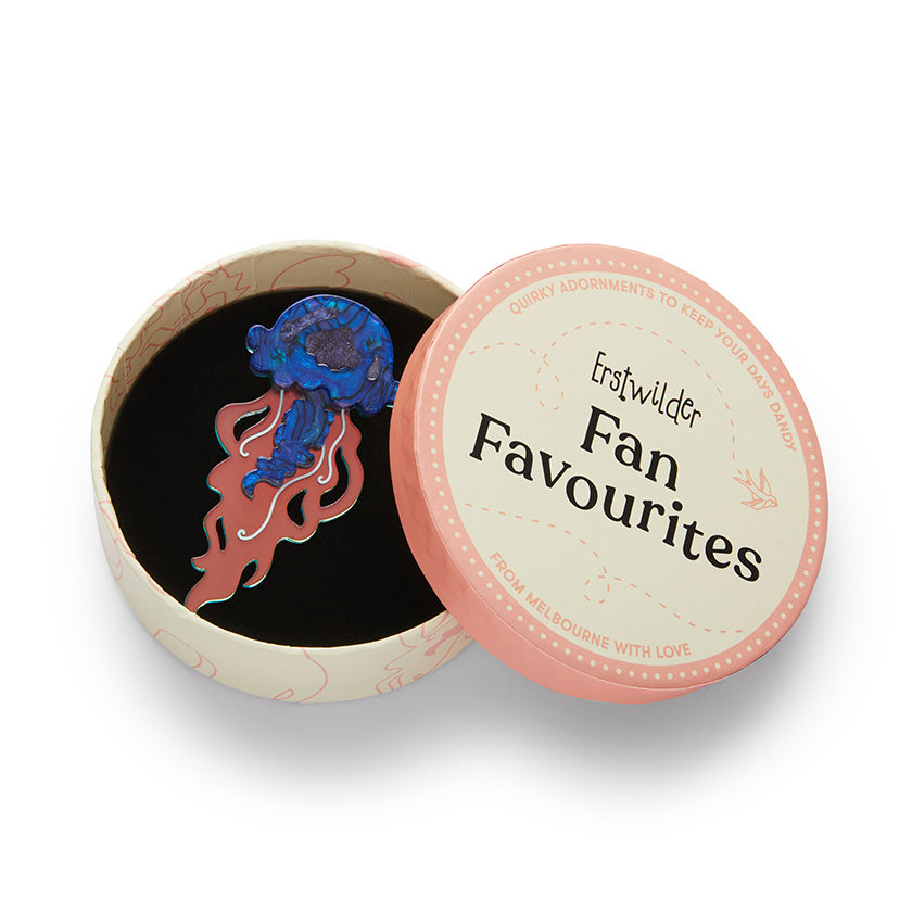 Please be aware that resin is akin to ceramic and glass and therefore may be damaged if dropped or knocked. Due to the use of high quality silver-plating in our brooch clasps, tarnishing and oxidisation can occur, producing black and gold discolouration. As with all silver products, you can simply restore it using a silver cloth. Keep your Erstwilder companion neatly tucked away in this box when not being worn, avoid contact with perfumes, lotions, water and excessive sunlight and you’ll have a trusted friend for years to come.
