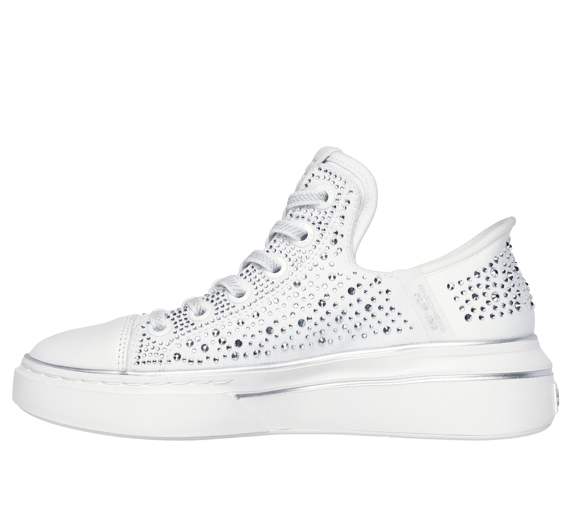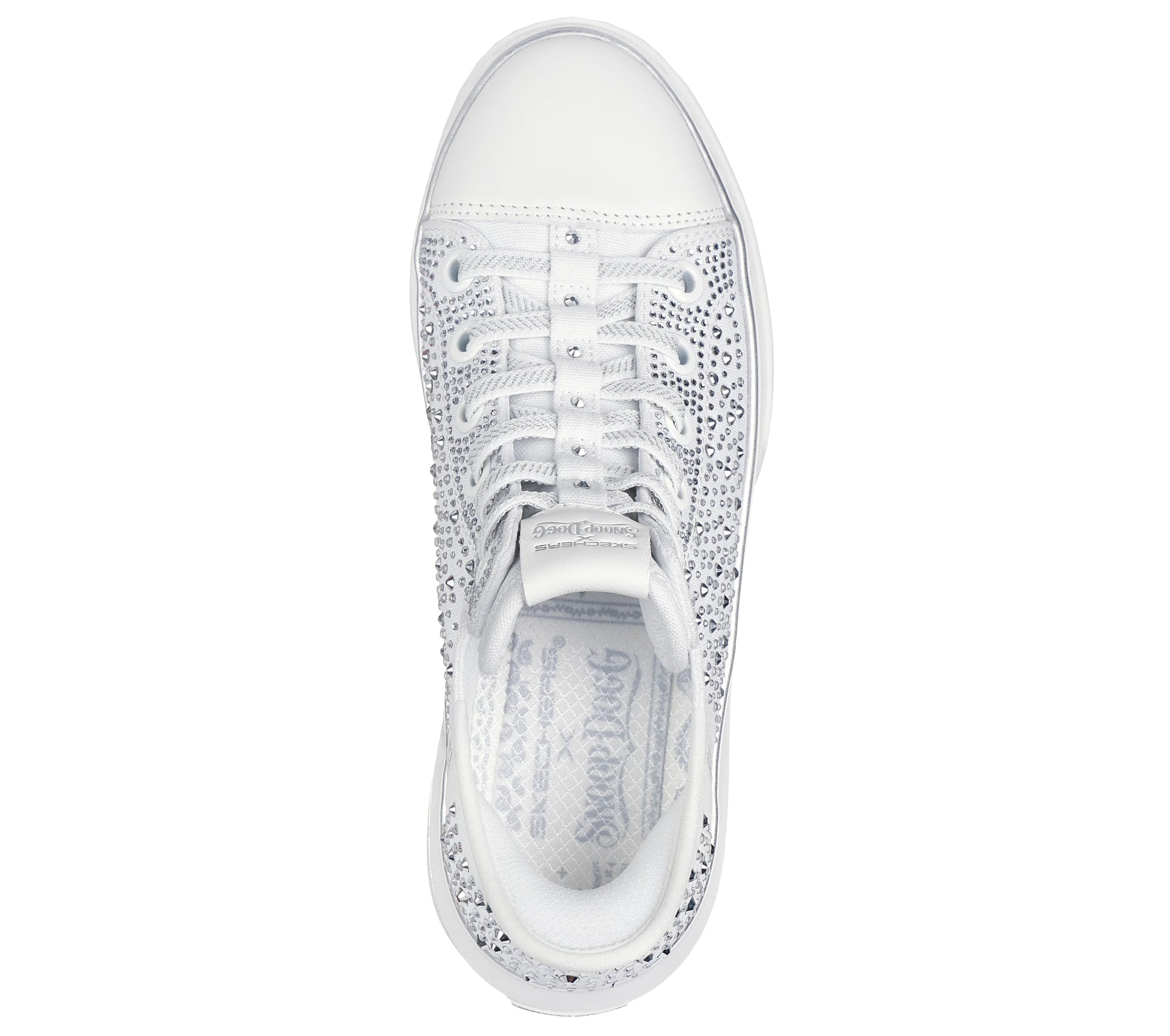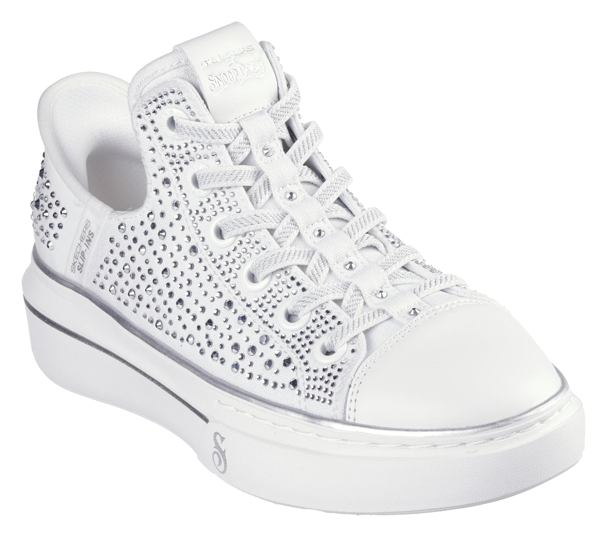 Joining the crew: Skechers Hands Free Slip-ins® x Snoop Dogg: Snoop One - Rhine-Stoned. Designed with our Heel Pillow®, this flossed-up version of the Snoop One features a rhinestone and studded canvas upper with metallic midsole trim and hands-free wearability that you can Just Slip In™ to, Snoop Style.
