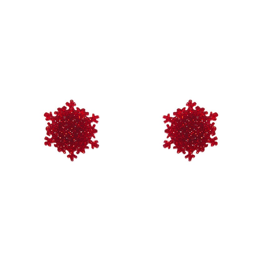 Snowflake Fine Glitter Stud Earrings - Red