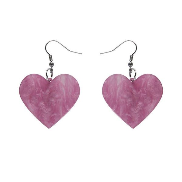 Solid Heart Ripple Resin Drop Earrings - Mauve