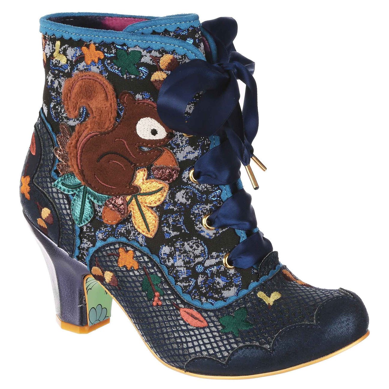 Perfect for all those foraging feels, these adorable embroidered heeled boots are a fabulous shimmering navy blue metallic paired with gorgeous cobalt panelling and bright sapphire ribbon laces! The cutest little mushrooms, leaves and acorns border the edge of the shoe, with an extra little patch of mushrooms on the heel too! Dreamy, classic and fun, add them to your life today!
