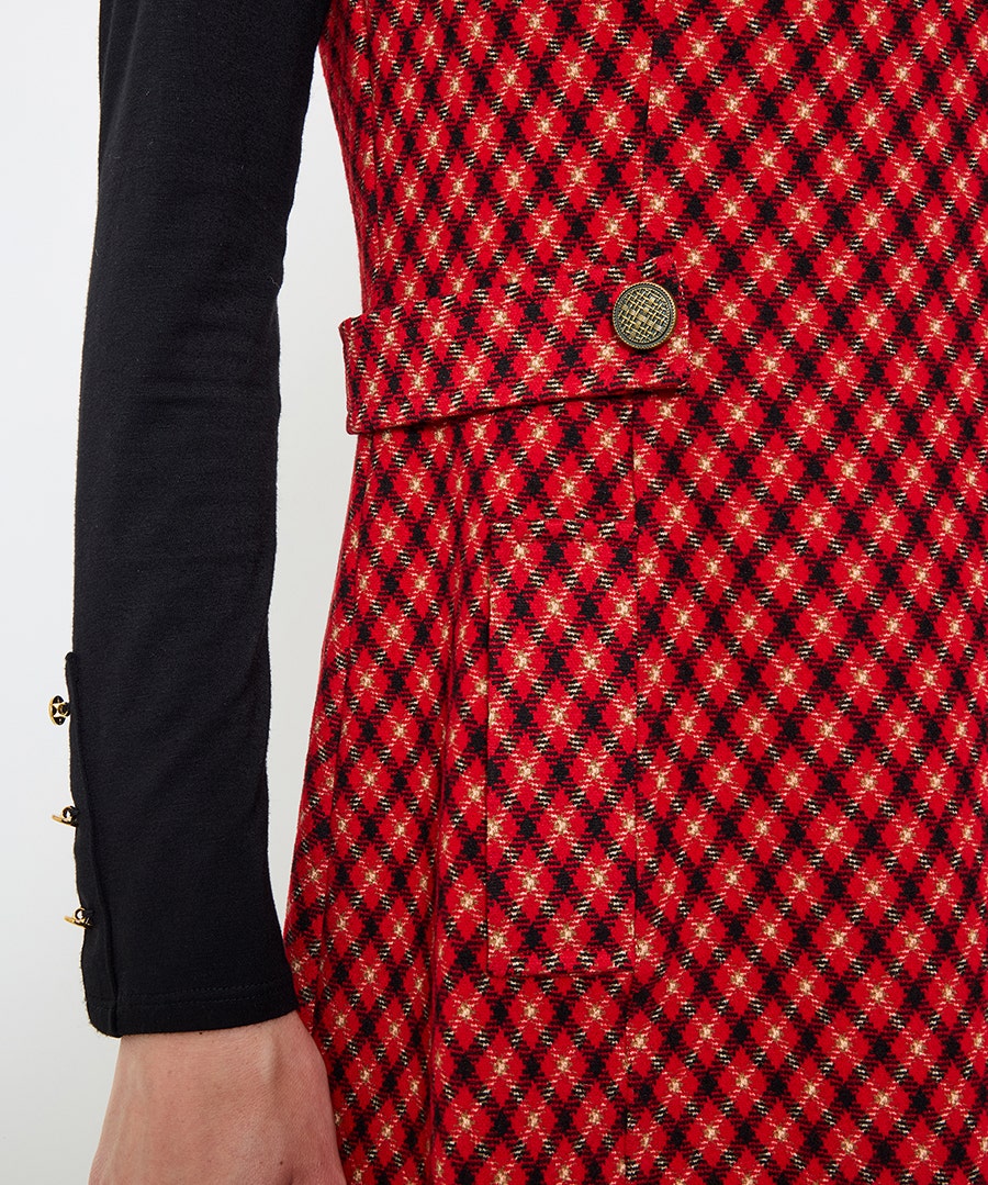 This structured mini pinafore dress is perfect for autumn styling. Covered in a chic print, notice how the edgy waist epaulettes will effortlessly enhance your silhouette. Made from thick fabric for the cooler seasons, you can wear it alone with knee-high boots, or with a blouse and tights for a cosy-as-can-be look.