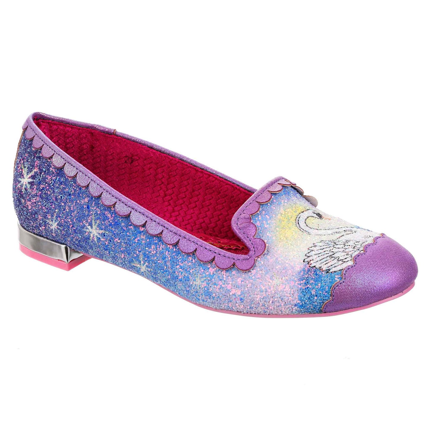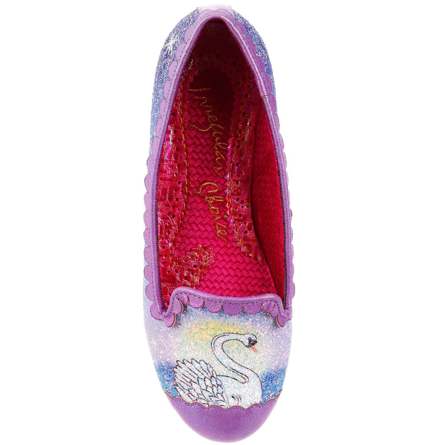 We hope you are ready to swan about in these fabulous flats! Featuring a gorgeous glitter covered print of two swans with the most beautiful sunset behind them! Bordered with a dreamy iridescent scalloped trim, and with a silver coloured flat heel, these lovelies are sure to be your new faves!
