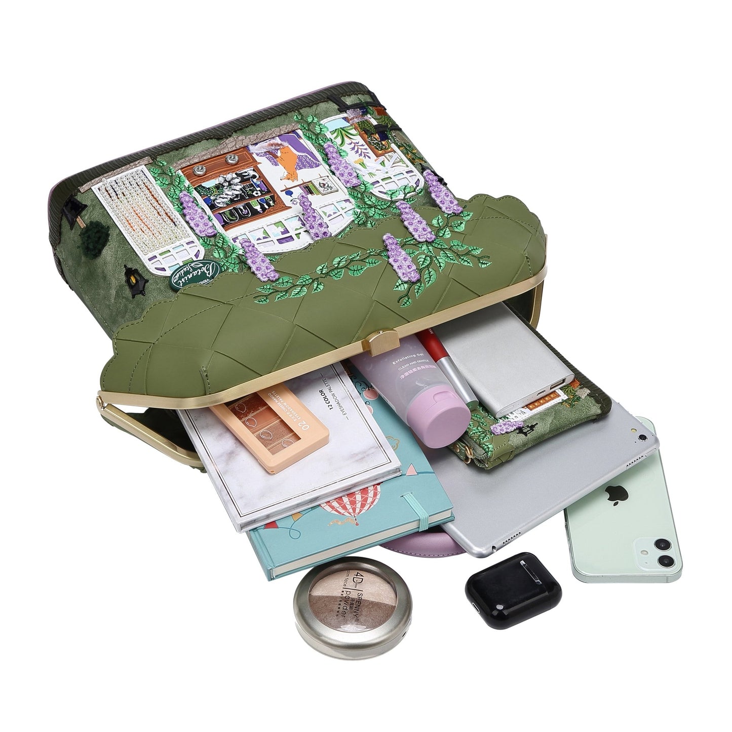 Wisteria blooms and pot plants. Decorated with diamante gems and