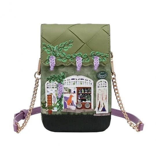 Wisteria blooms and pot plants. Decorated with diamante gems and