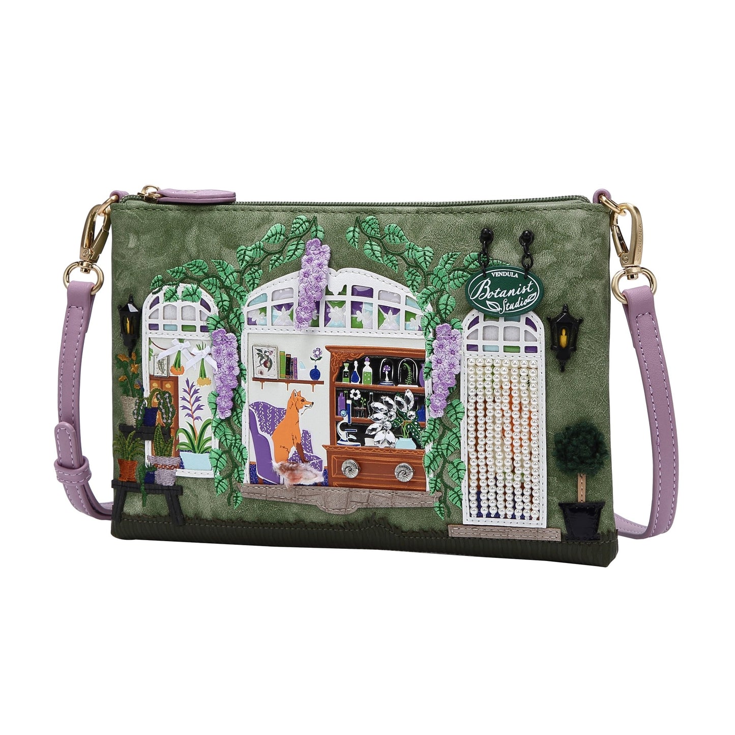 Wisteria blooms and pot plants. Decorated with diamante gems and