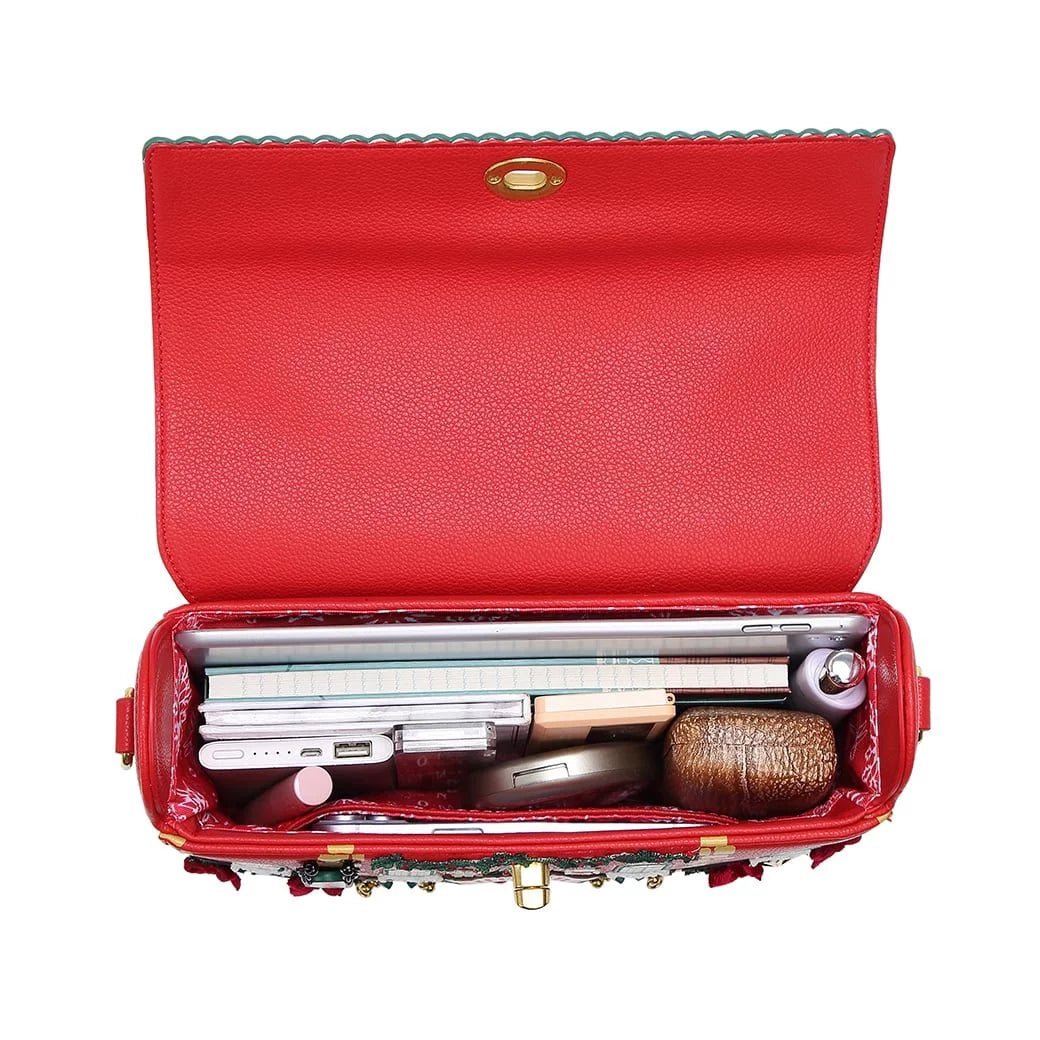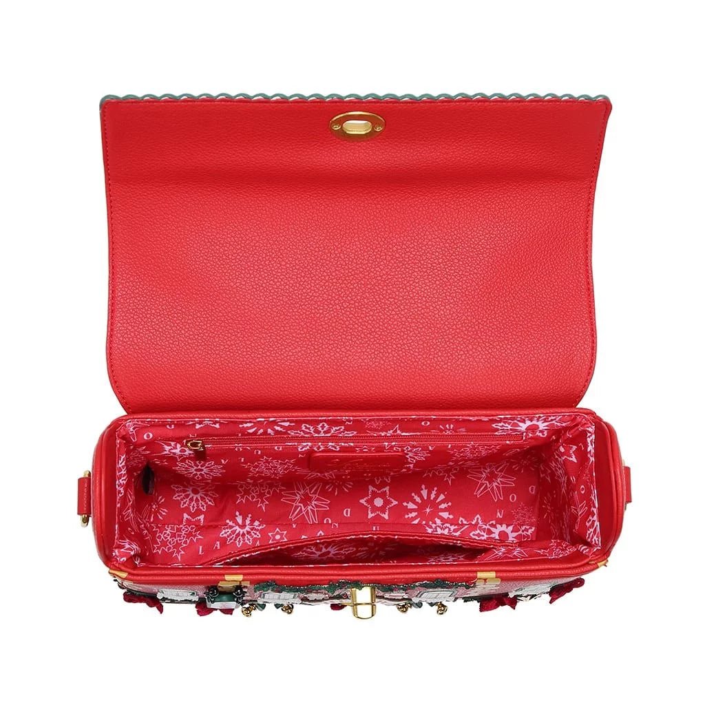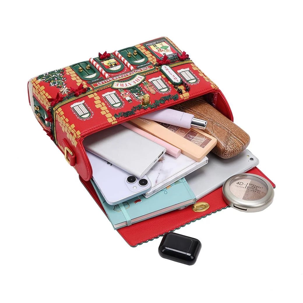 Some dream of a white Christmas, but we are dreaming of another Christmas-themed bag… and here it is! The Christmas Theatre Box Bag is the perfect everyday bag thanks to its spacious compartment and pockets, but you can also keep it under wraps for a special occasion. This vegan leather bag can be carried over the shoulder, crossbody, or as a clutch bag by simply detaching the strap, which is adjustable for extra comfort. Are you ready for an evening at the theatre? Get your tickets and embark on an enchanting adventure! Let's see if you and your friends will recognise all these characters at the windows and behind the doors. Have a cracking time!